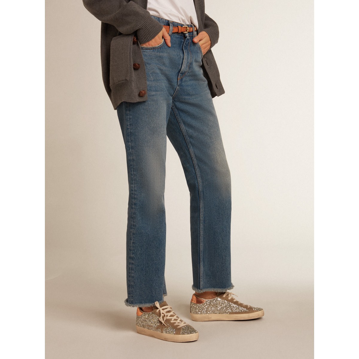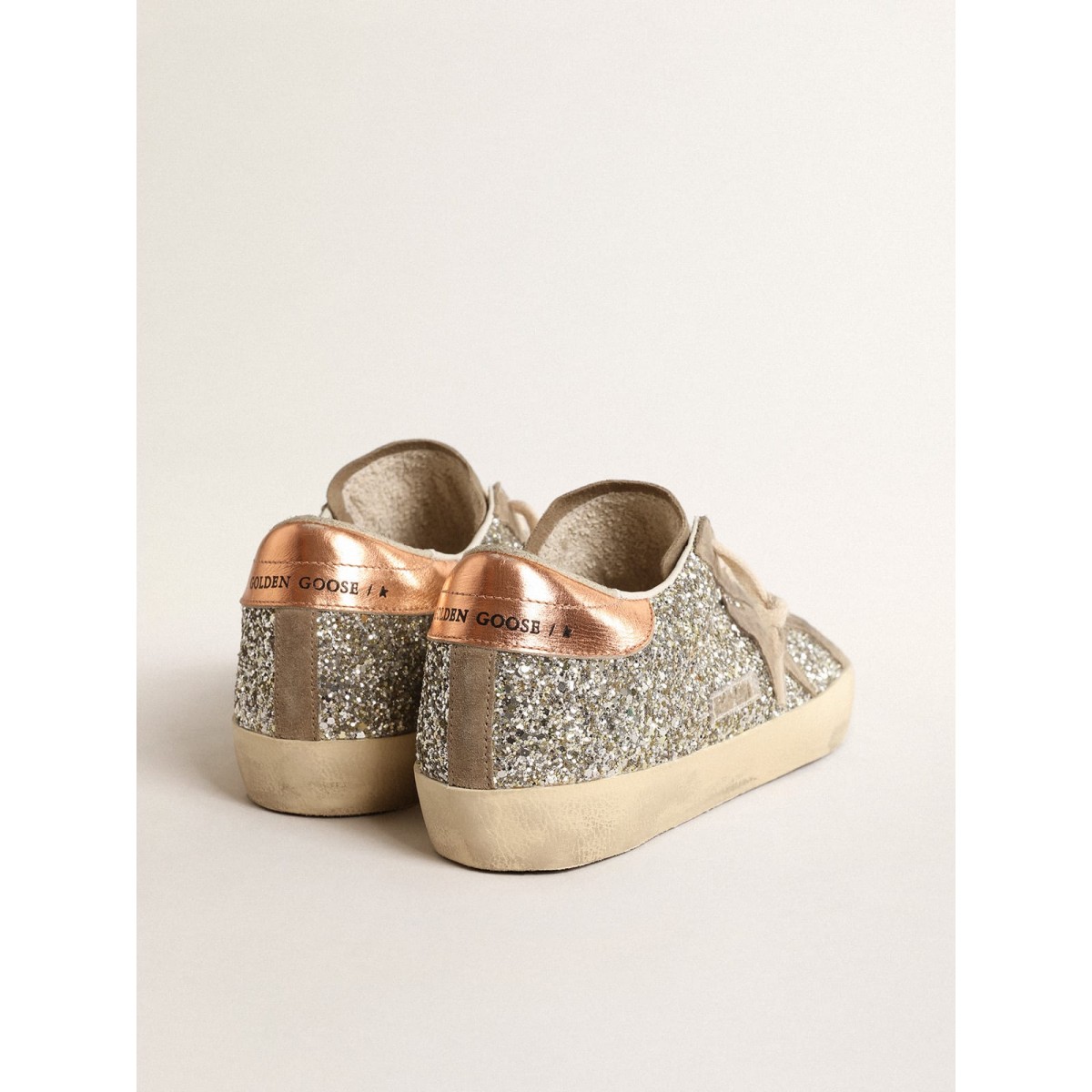 Un’icona senza tempo eppure è in continua evoluzione. A Golden, adoriamo prendere i nostri classici e rielaborarli sempre, sempre da una nuova prospettiva. Queste super stelle con una tomaia glitter in platino presentano una stella in pelle scamosciata grigio-grigio e tacco metallico in pelle metallica. La lingua in pelle scamosciata colomba-grigio e inserti e i lacci color crema aggiungono il tocco finale.