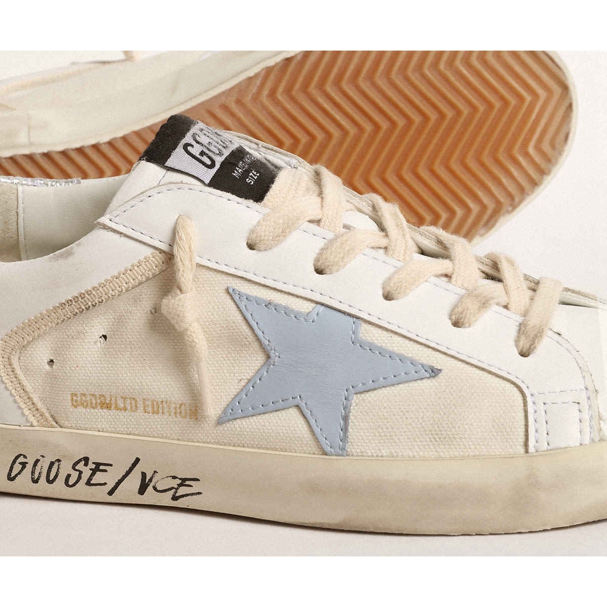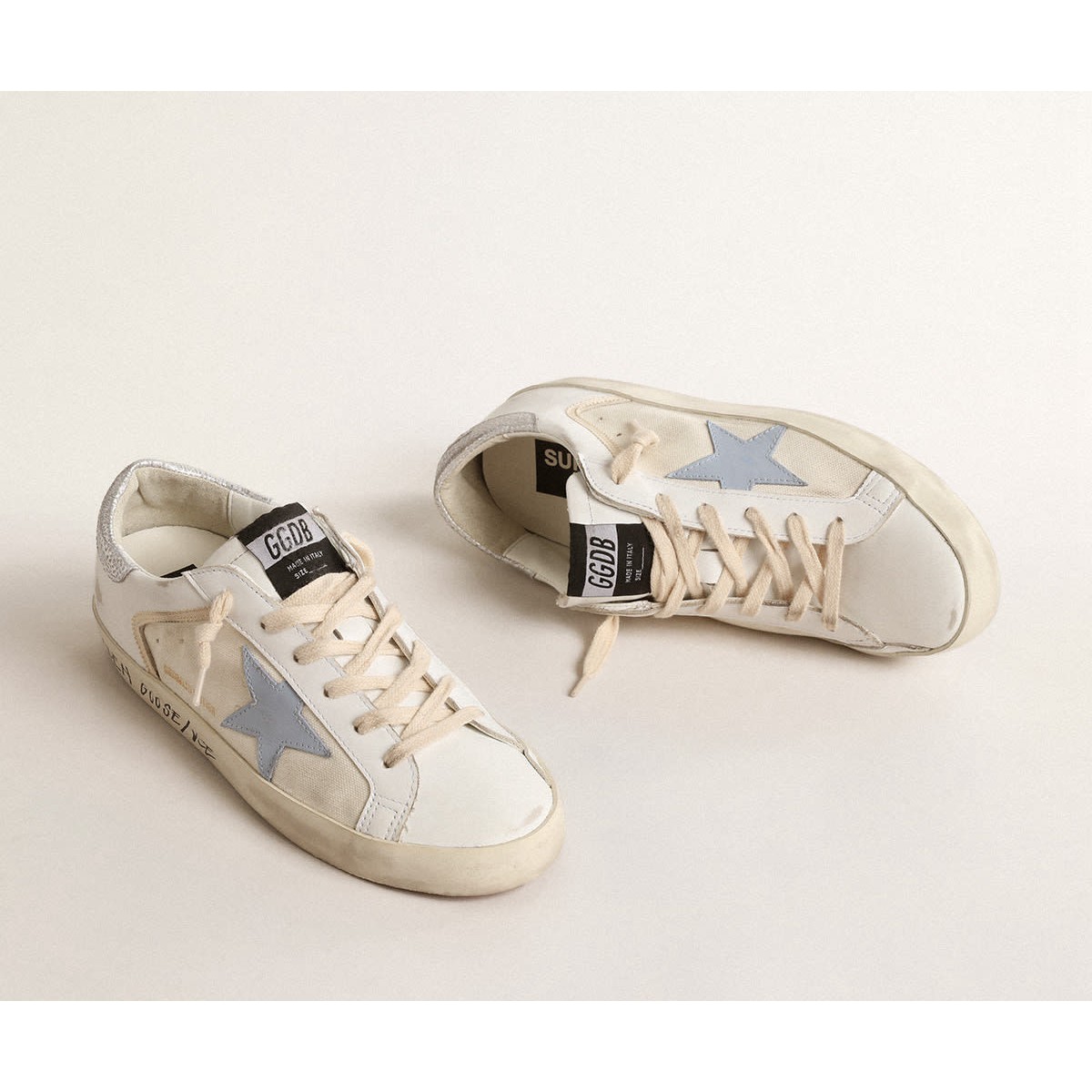 Golden Goose Women’s Super-Star Ltd con stella azzurra e tavola in pelle d’argento