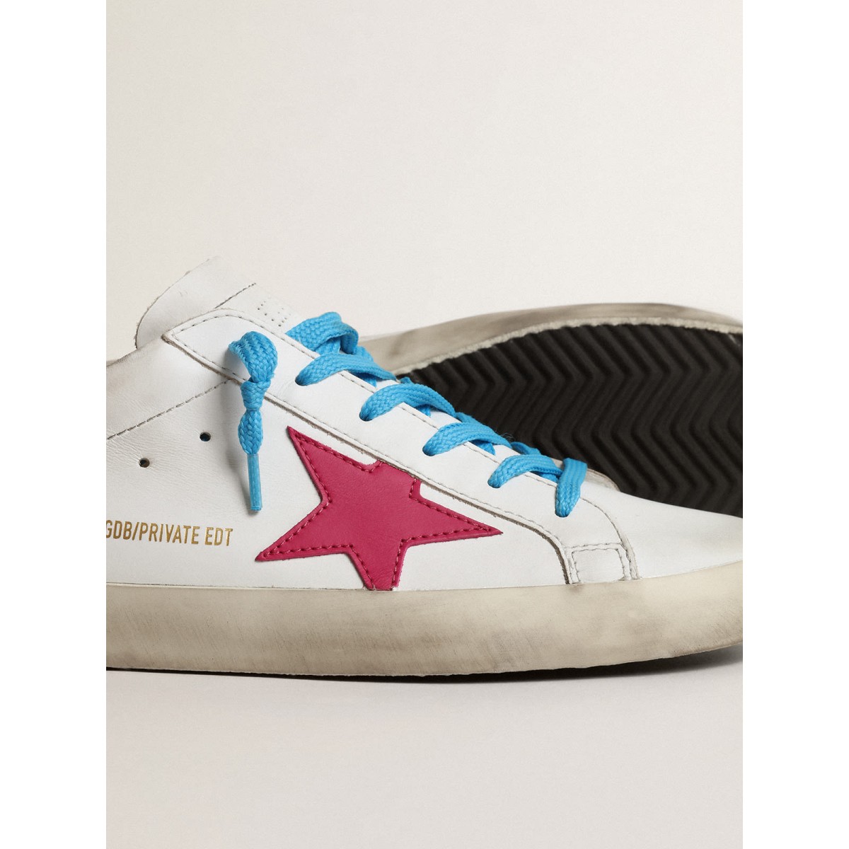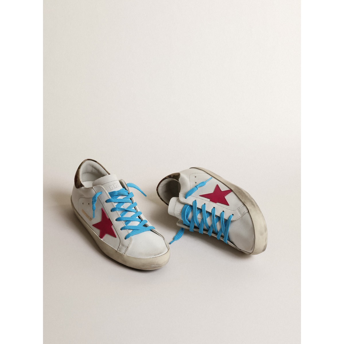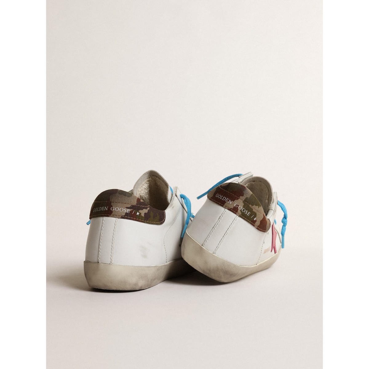 Un’icona senza tempo eppure è in continua evoluzione. A Golden, adoriamo prendere i nostri classici e rielaborarli sempre, sempre da una nuova prospettiva. In un’edizione limitata, le scarpe da ginnastica super star da donna in pelle bianca presentano la scheda del tallone mimetico e la star di Fuchsia. I lacci color turchesi aggiungono il tocco finale.
