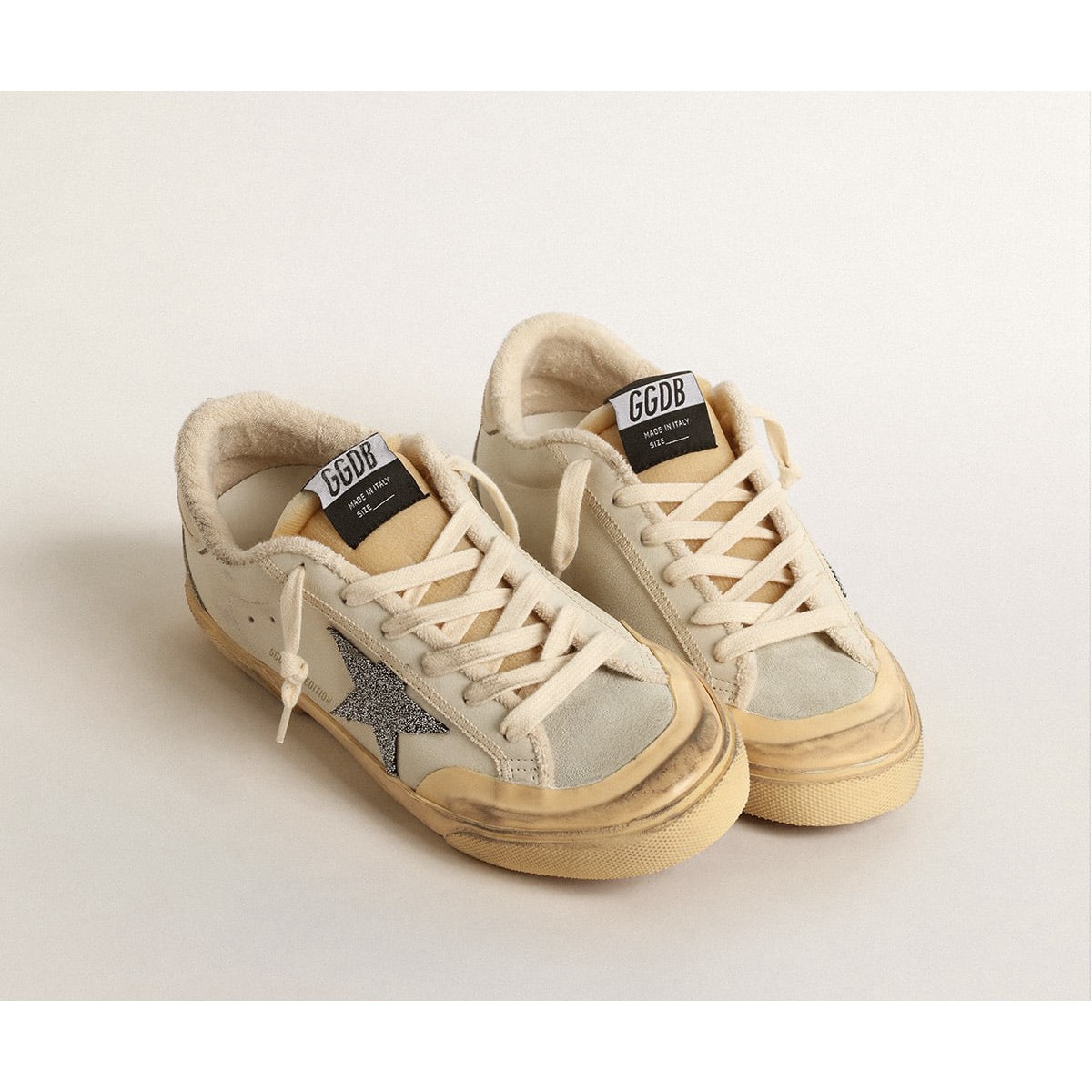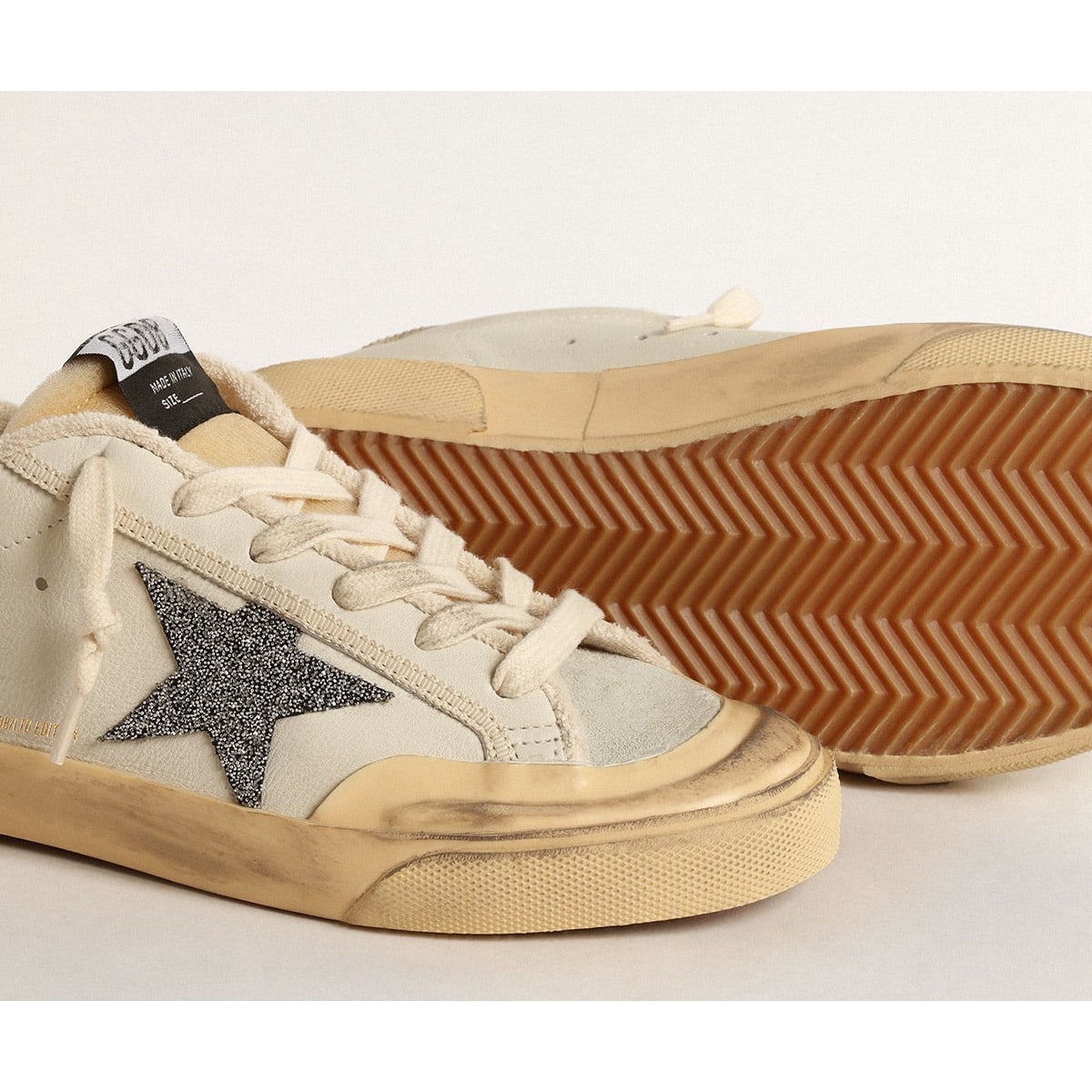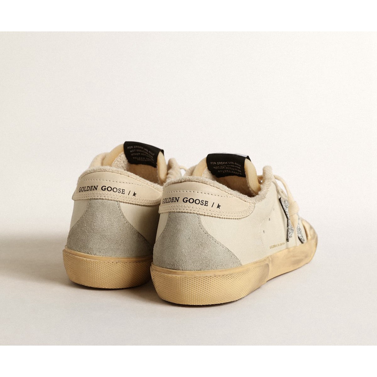 Un’icona senza tempo eppure eppure in continua evoluzione. A Golden, adoriamo prendere i nostri classici e rielaborarli sempre, sempre da una nuova prospettiva. Questi super stelle con una tomaia in pelle bianca presentano una stella in micro-cristalli neri Swarovski, una linguetta di tacco in pelle crema e inserti in pelle scamosciata grigio ghiacciato. Il rivestimento crema e i lacci color crema aggiungono i tocchi finali.