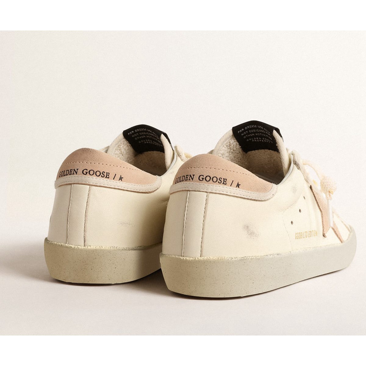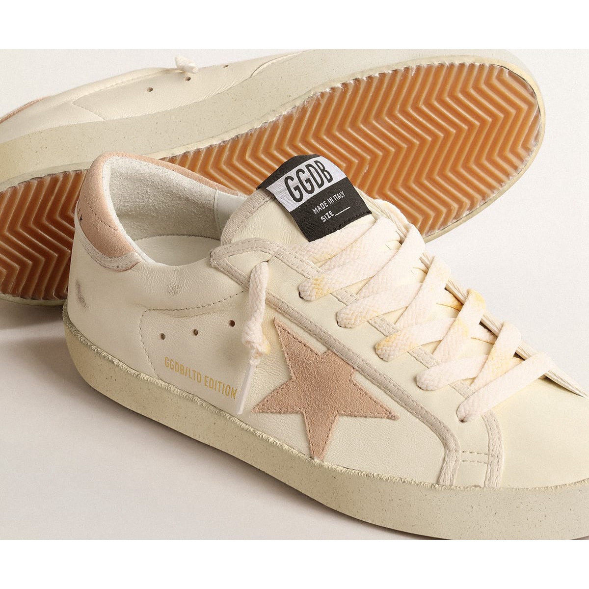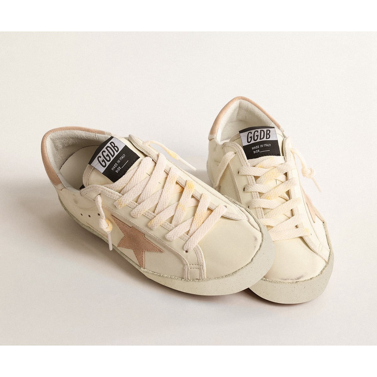Un’icona senza tempo eppure che è costantemente in evoluzione. A Golden, adoriamo prendere i nostri classici e rielaborarli sempre, sempre da una nuova prospettiva. Queste donne super-star con una tomaia in pelle nappa bianca presentano una stella in pelle scamosciata nuda e una linguetta di tacco in pelle scamosciata nuda con bordi bianchi. Il rivestimento in pelle Nappa bianca e i lacci bianchi con effetto ingiallito aggiungono il tocco finale.