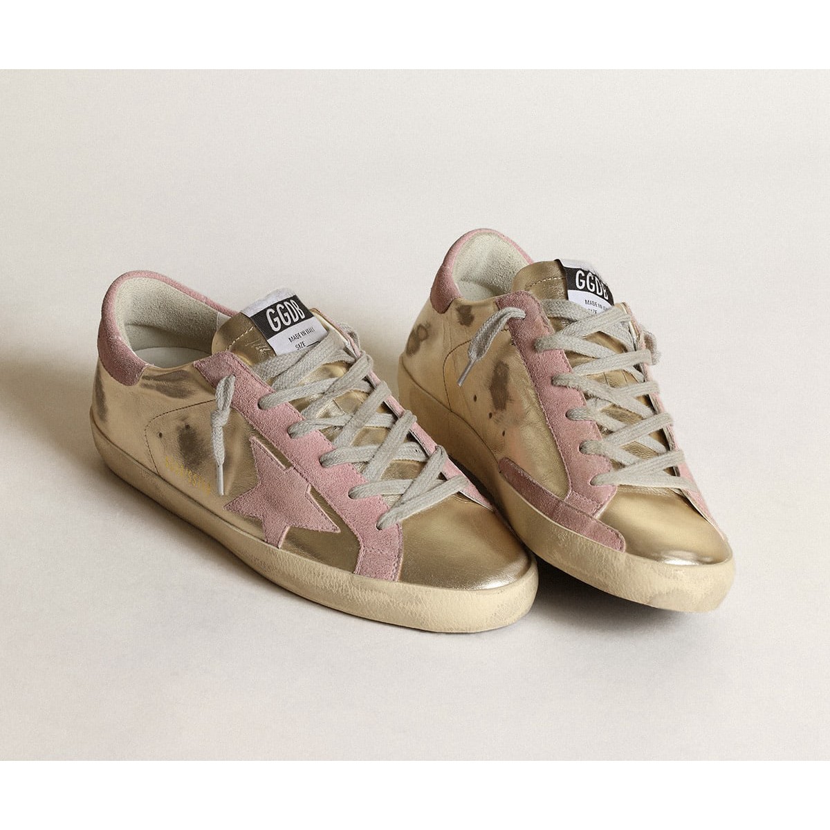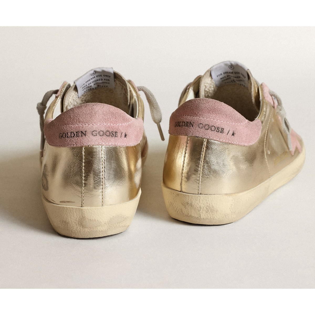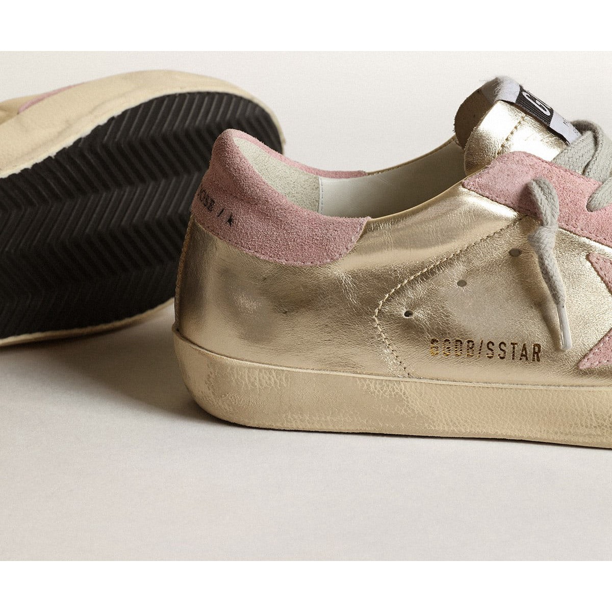 Golden Goose Women’s Super-Star Scarpe Ginnastica Ltd in Platinum Laminated Leather and Pink Star GWF00101.F003360.65170