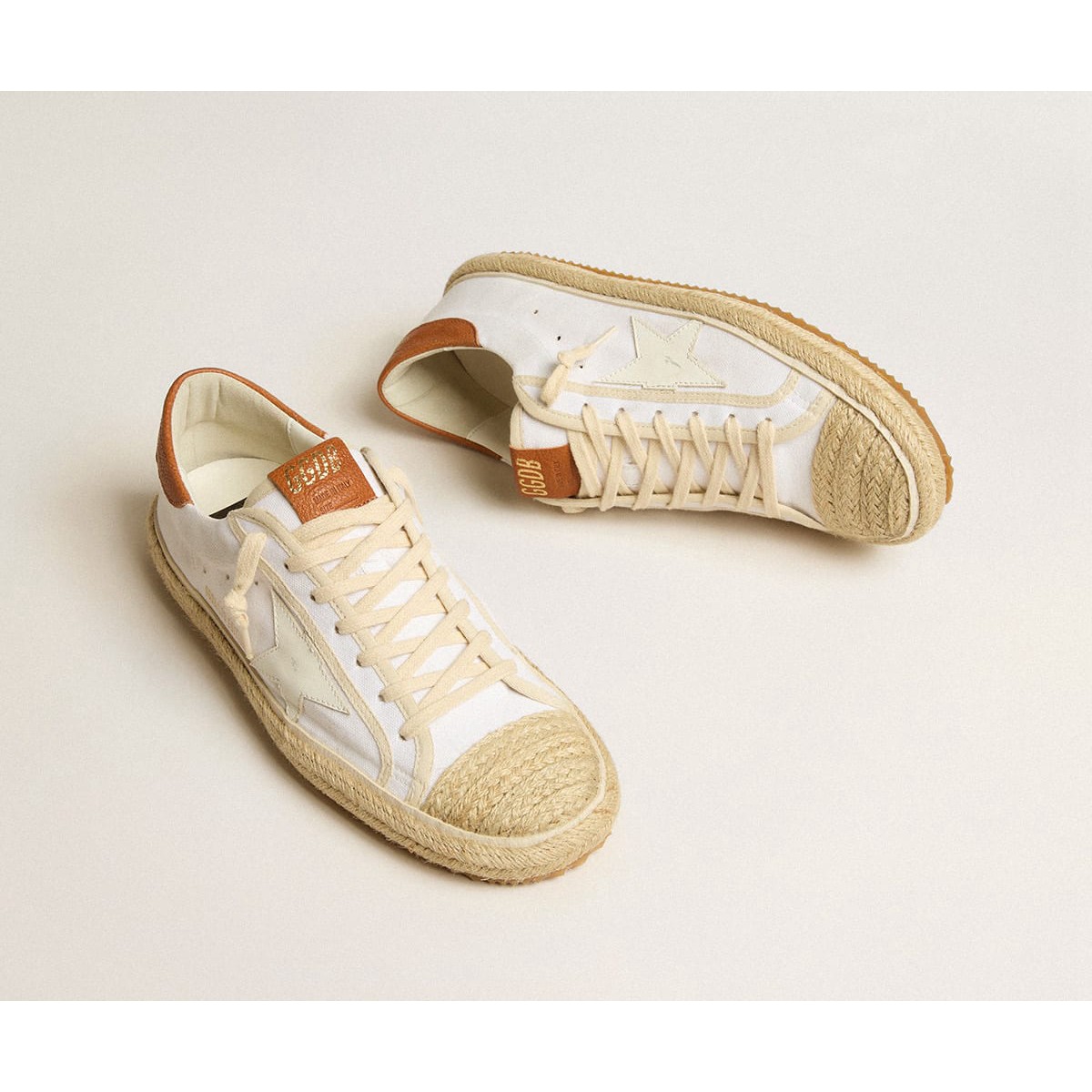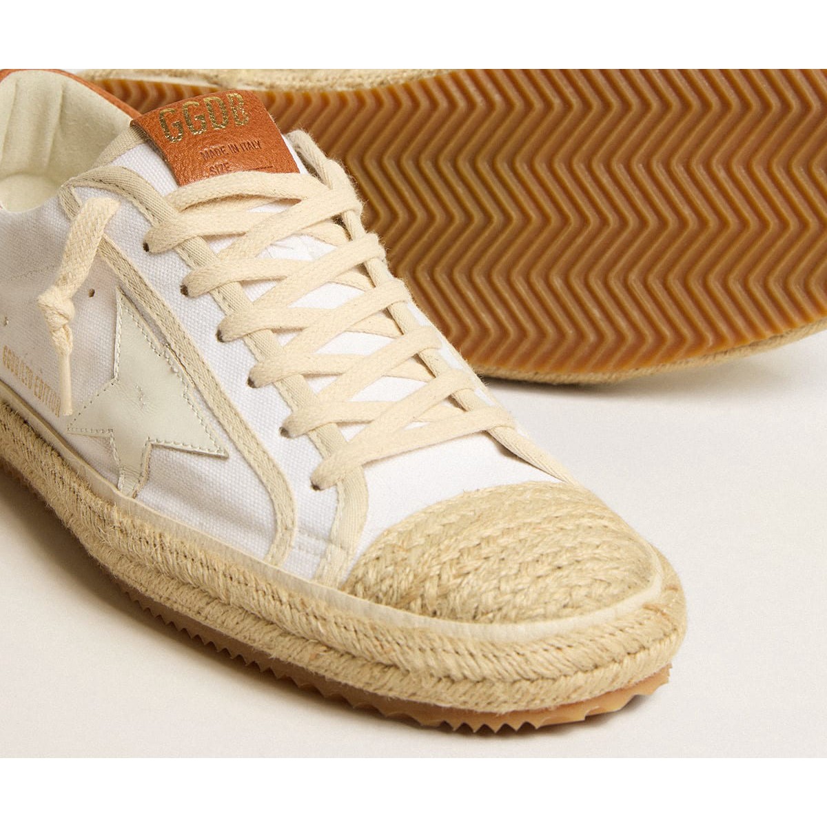 Golden Goose Men’s Super-Star Scarpe Ginnastica Ltd in tela con stella in pelle bianca e Raffia Toe GMF00101.F005083.11621