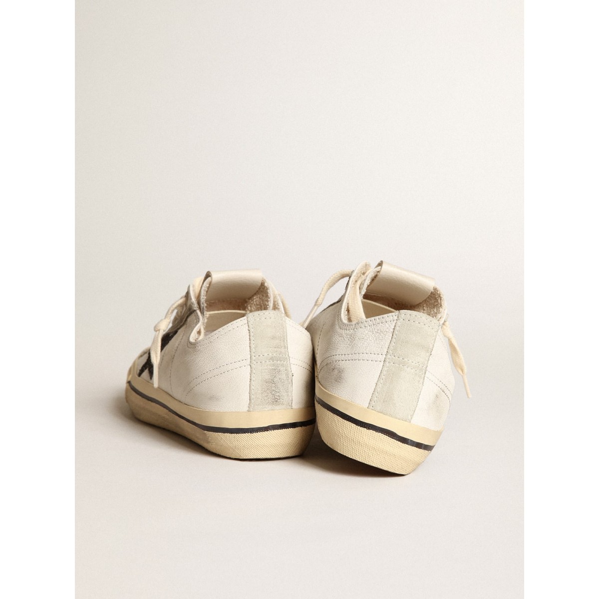 Golden Goose V-Star in pelle bianca Nappa con una stella glitter nera GWF00129.F003922.10432