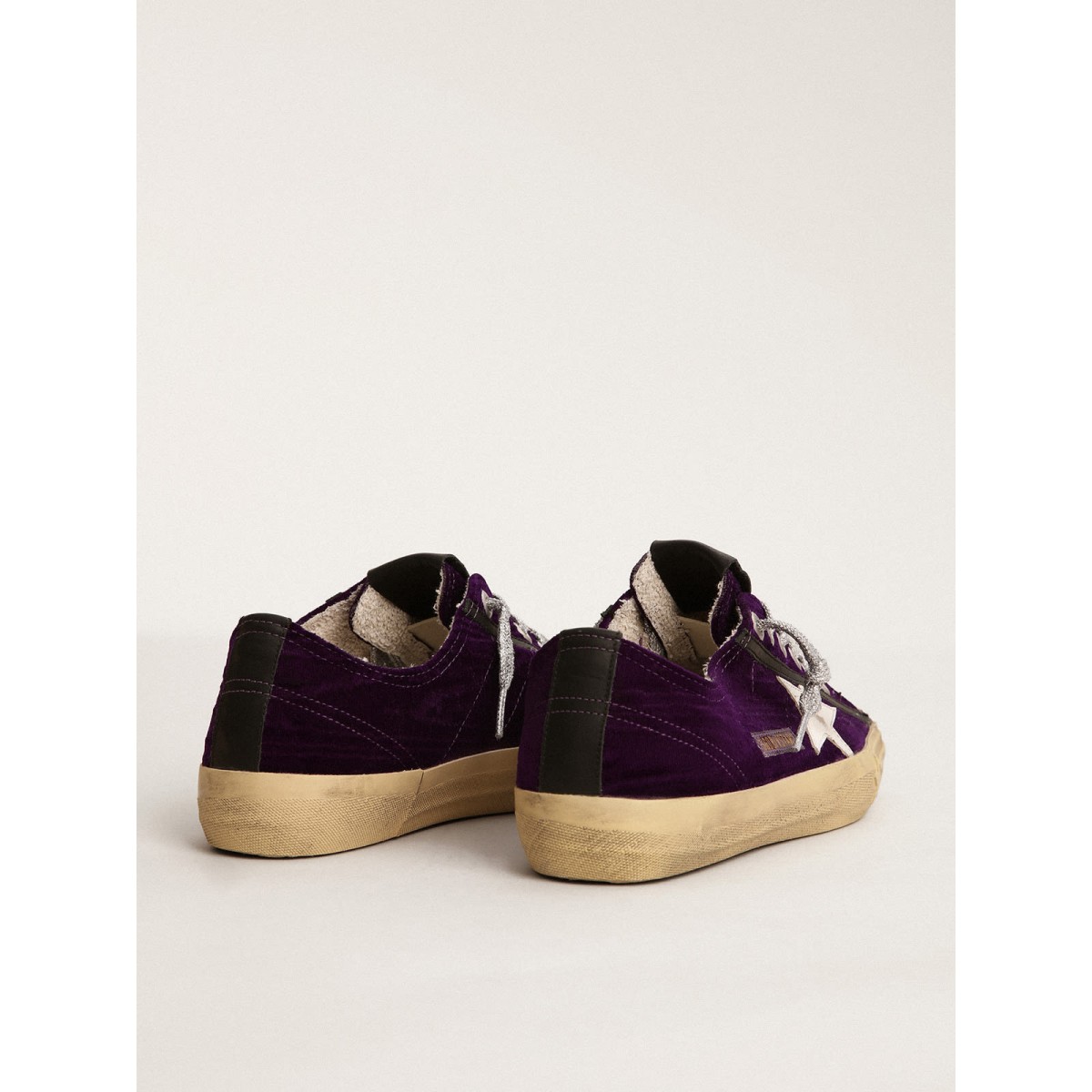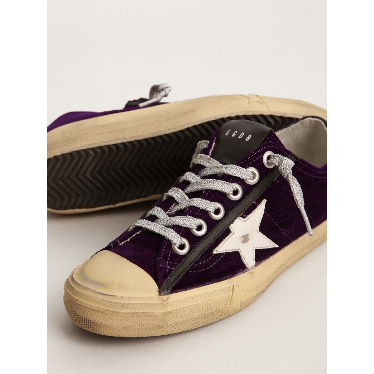 La bellezza che sta nella semplicità: nelle nostre Scarpe Ginnastica a V-Star, una forma essenziale incontra dettagli eleganti. La tomaia in velluto viola di questo modello presenta una stella in pelle bianca e una linguetta in pelle nera. E lacci d’argento aggiungono il tocco finale.