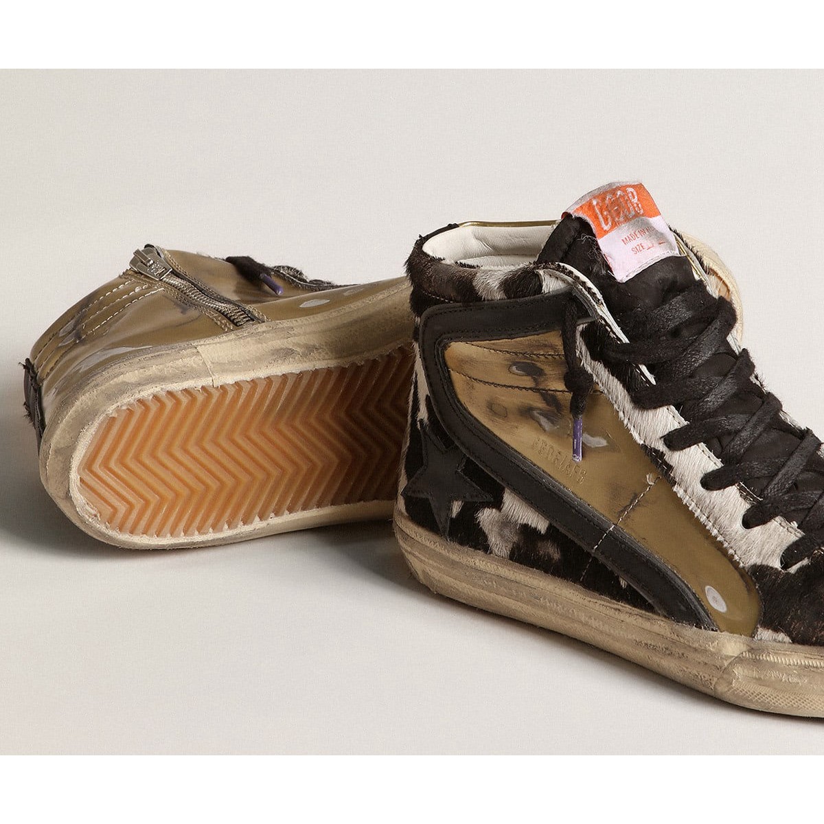 Laboratorio di Scarpe Ginnastica per Scarpe Ginnastica da donna d’oca doratura in Pony Skin con stampa zebra con inserti d’oro GWF00525.F004411.82259
