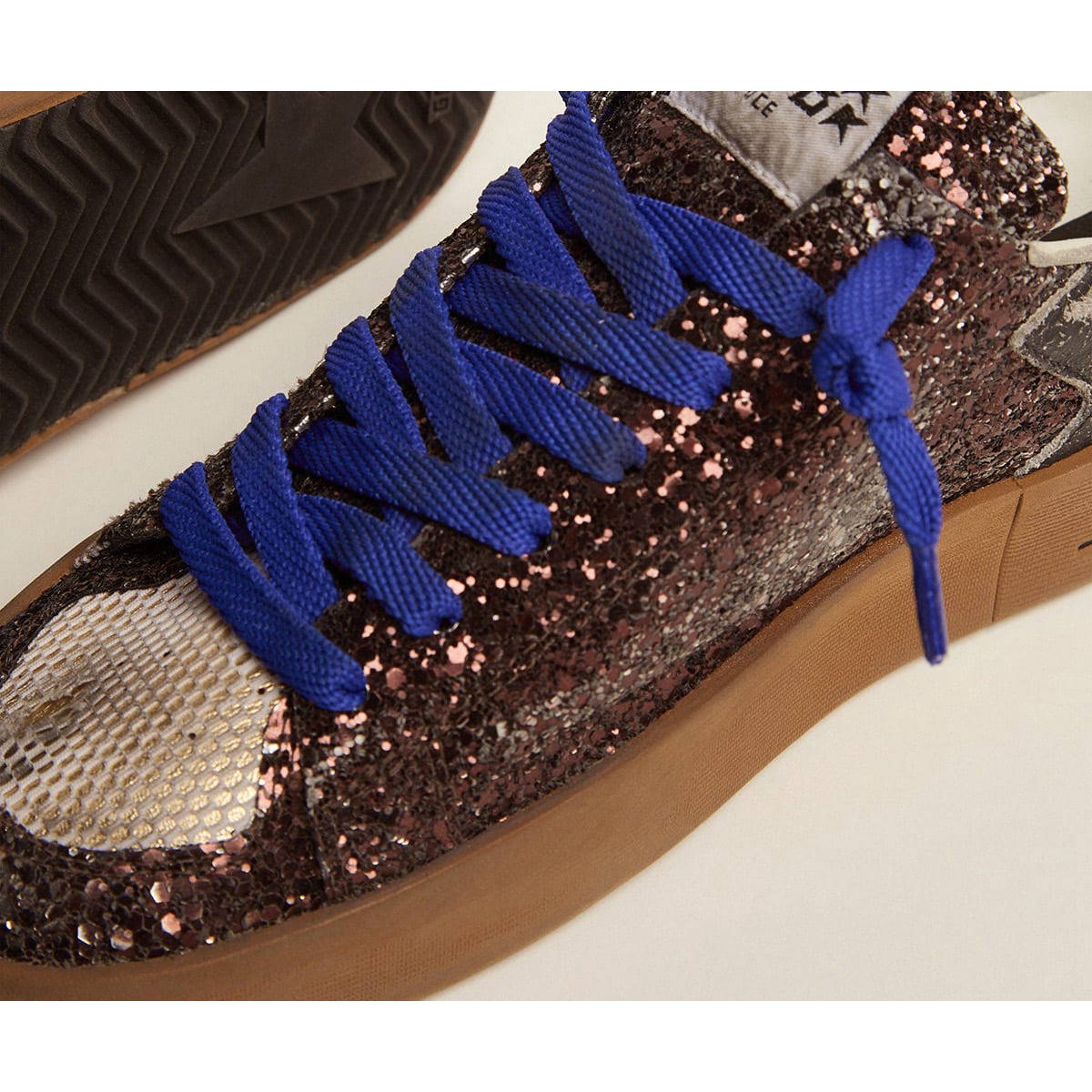Laboratorio di Scarpe Ginnastica stardan d’oca doratura con stella tomaia e nera glitter marrone GWF00128.F002382.81437