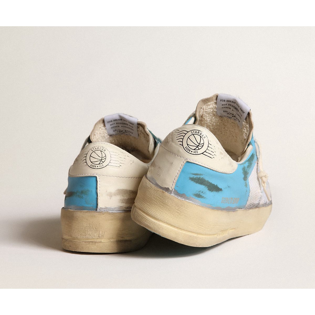 I gloriosi novalli avvolti in una Scarpe Ginnastica. Le Scarpe Ginnastica Stardan rendono omaggio alle icone di basket di quel decennio, tenendo d’occhio il presente. Questa versione maschile in edizione limitata presenta una tomaia a maglie bianca azzurra e blu. La stella in pelle azzurra e la linguetta in pelle bianca aggiungono i tocchi finali.