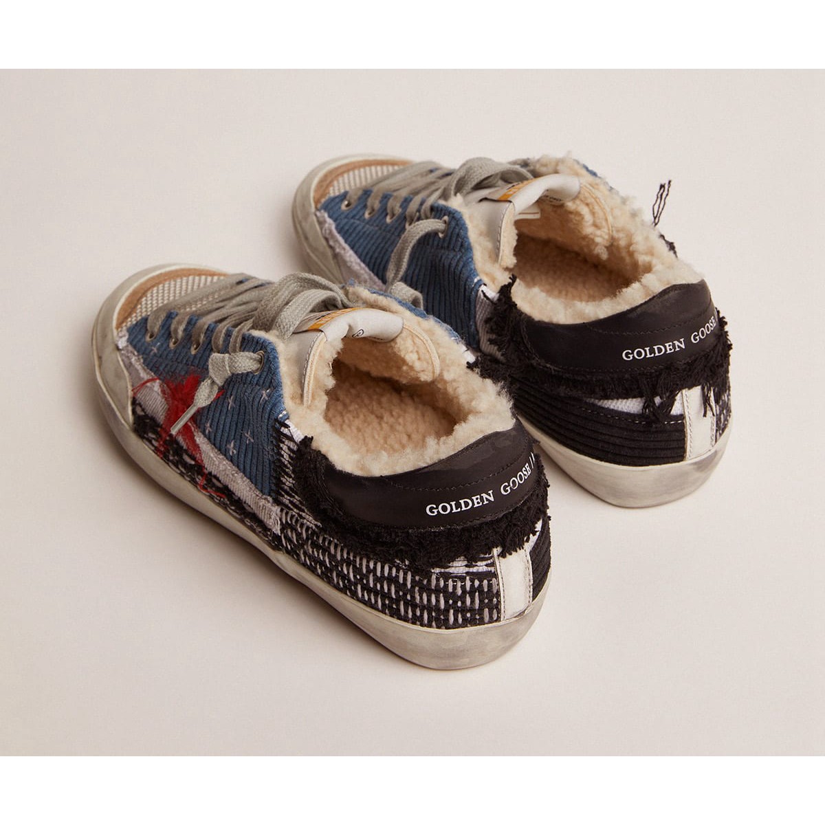 Laboratorio di Scarpe Ginnastica super-star femminili d’oca d’oro con patchwork e fodera di shearling GWF00249.F002424.80100