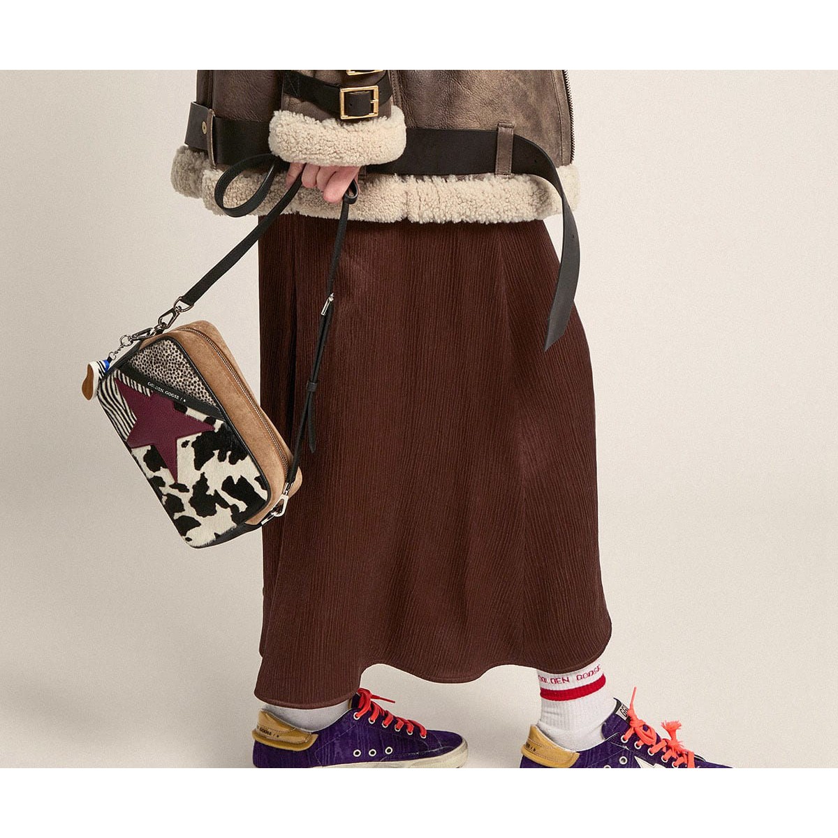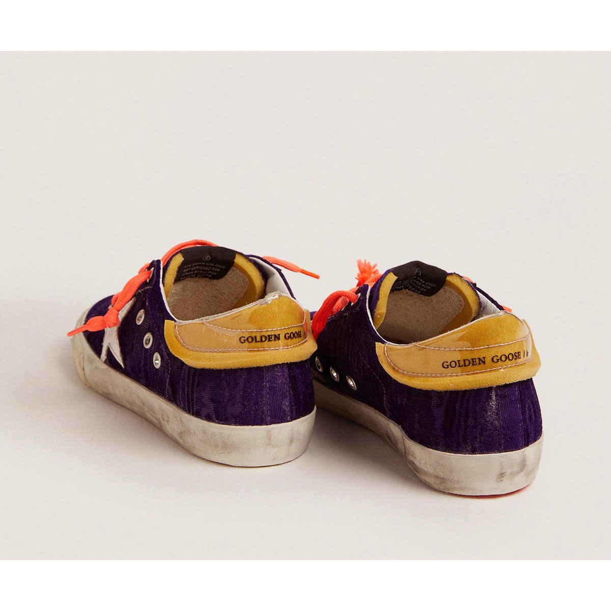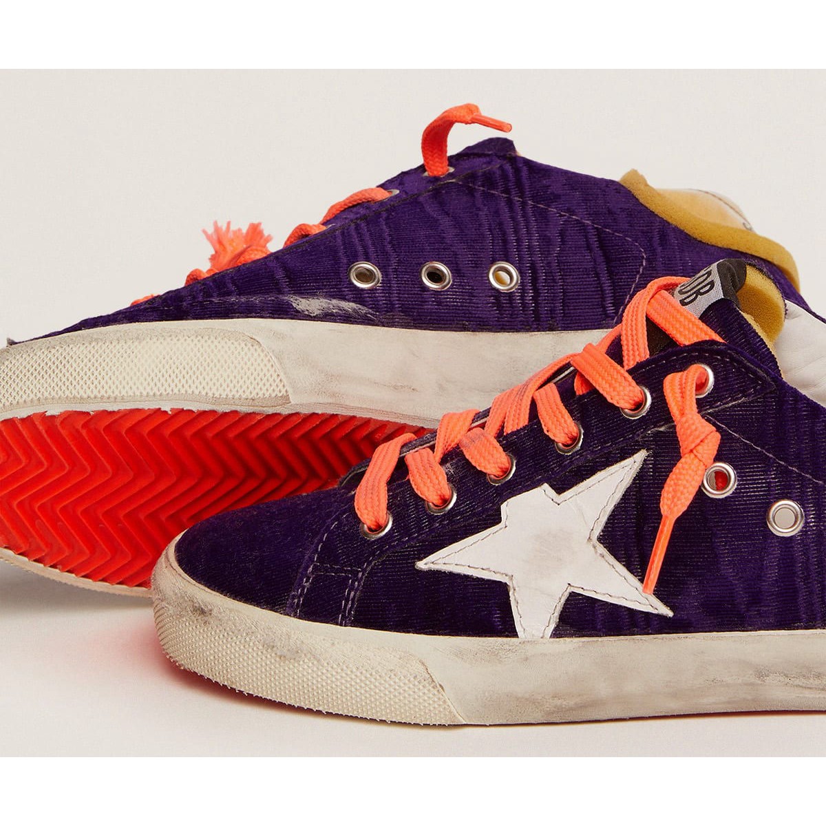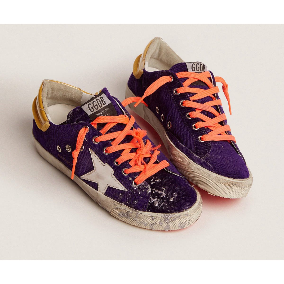 Un’icona senza tempo eppure che è costantemente in evoluzione. A Golden, adoriamo prendere i nostri classici e rielaborarli sempre, sempre da una nuova prospettiva. Queste Scarpe Ginnastica da laboratorio super-star in edizione limitata presentano una tomaia in velluto viola, una linguetta in schiuma e tallone in PVC e una stella in pelle bianca. Una spolverata di glitter d’argento sul tappo della punta della Scarpe Ginnastica destra aggiunge il tocco finale.