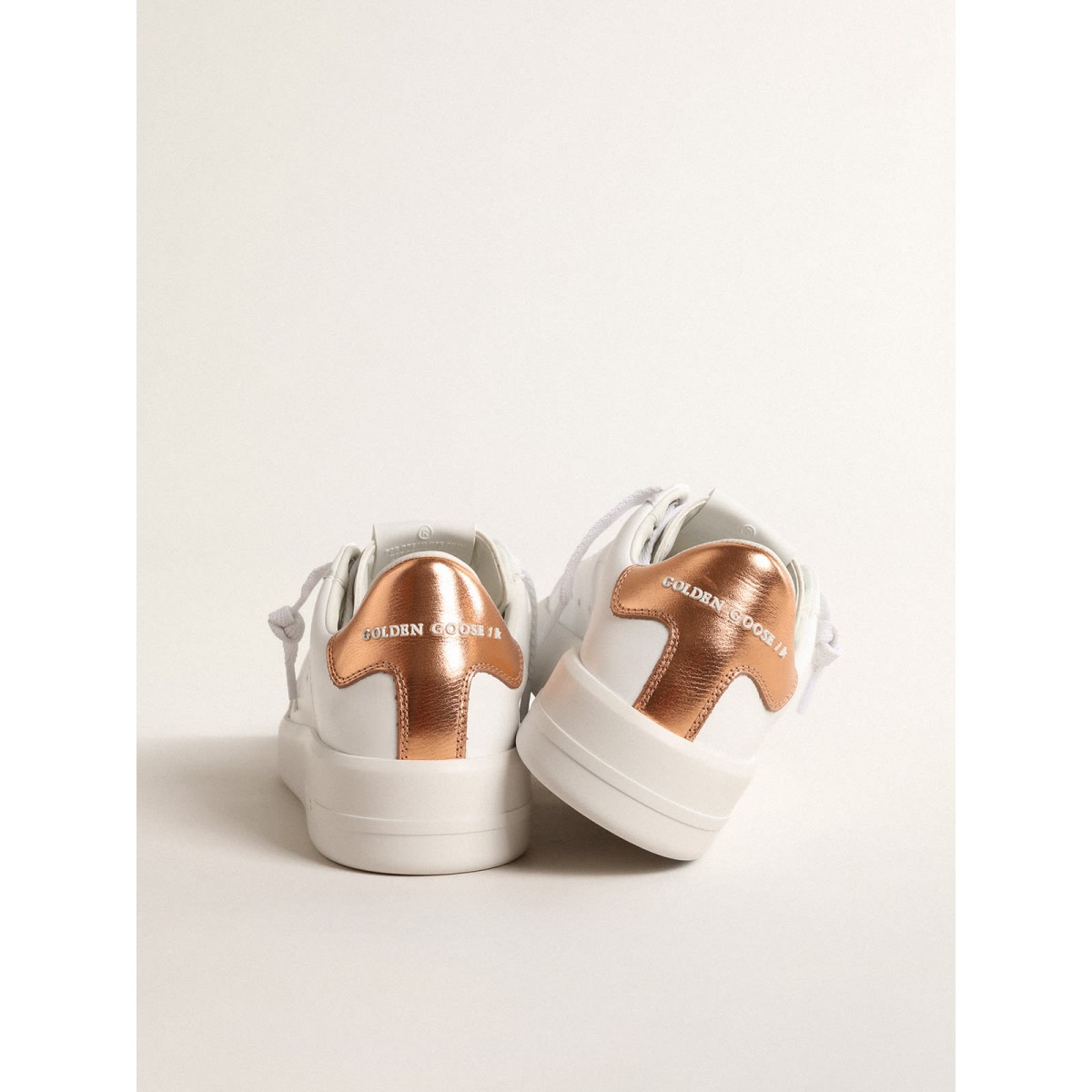 Quando il minimalismo della forma soddisfa la forza dei dettagli: le nostre Scarpe Ginnastica Purestar combinano uno stile discreto con il massimo comfort grazie alla loro tecnologia che assorbiva lo shock. Questo modello, con una tomaia bianca a base biologica, presenta una stella tono-su tono e una linguetta metallica in pelle bronzo. I lacci bianchi completano l’aspetto.