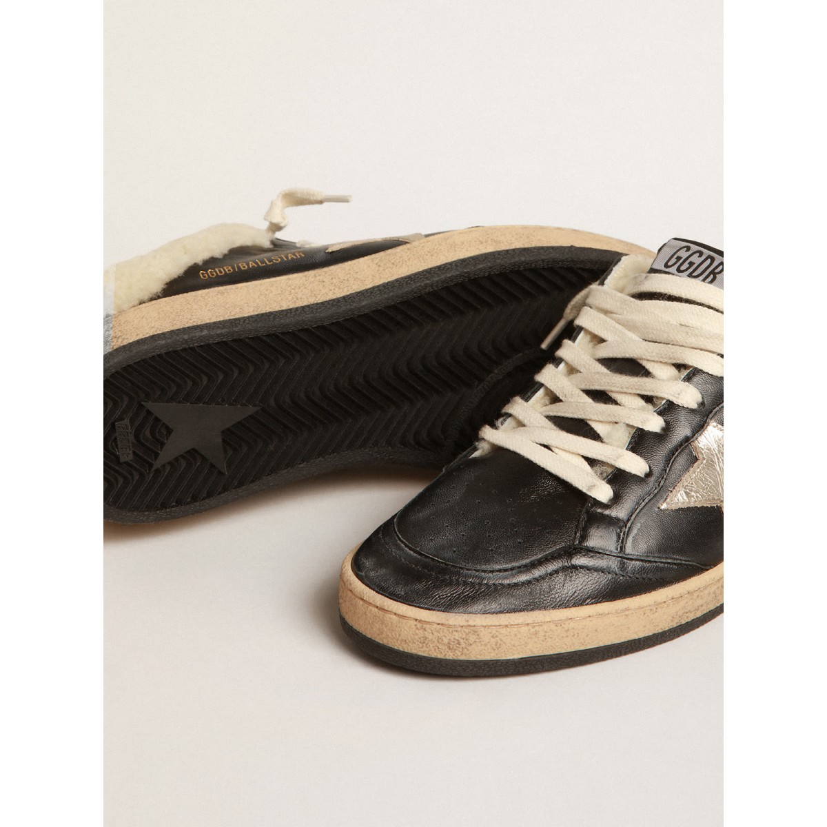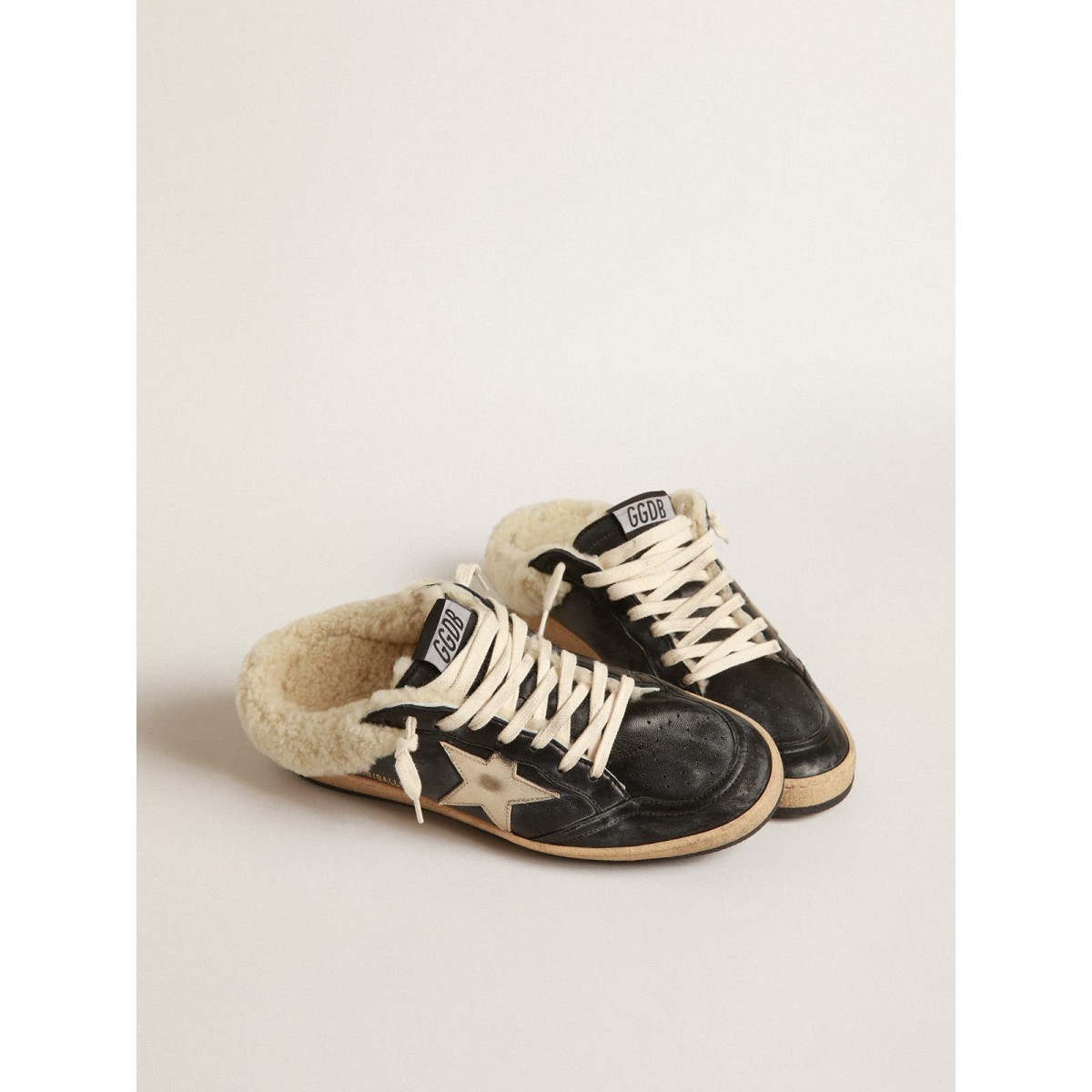 Sognando gli anni Ottanta. Le nostre Scarpe Ginnastica a stella della palla hanno un’atmosfera universitaria americana catturata tra un tiro a cerchio e un giro di skateboard. Foccato in morbida shearling beige, questo modello di versione sabot presenta una tomaia in pelle nappa nera accentuata da una stella in pelle metallica in platino. I lacci della crema aggiungono il tocco finale: cose belle che non passano mai di moda.