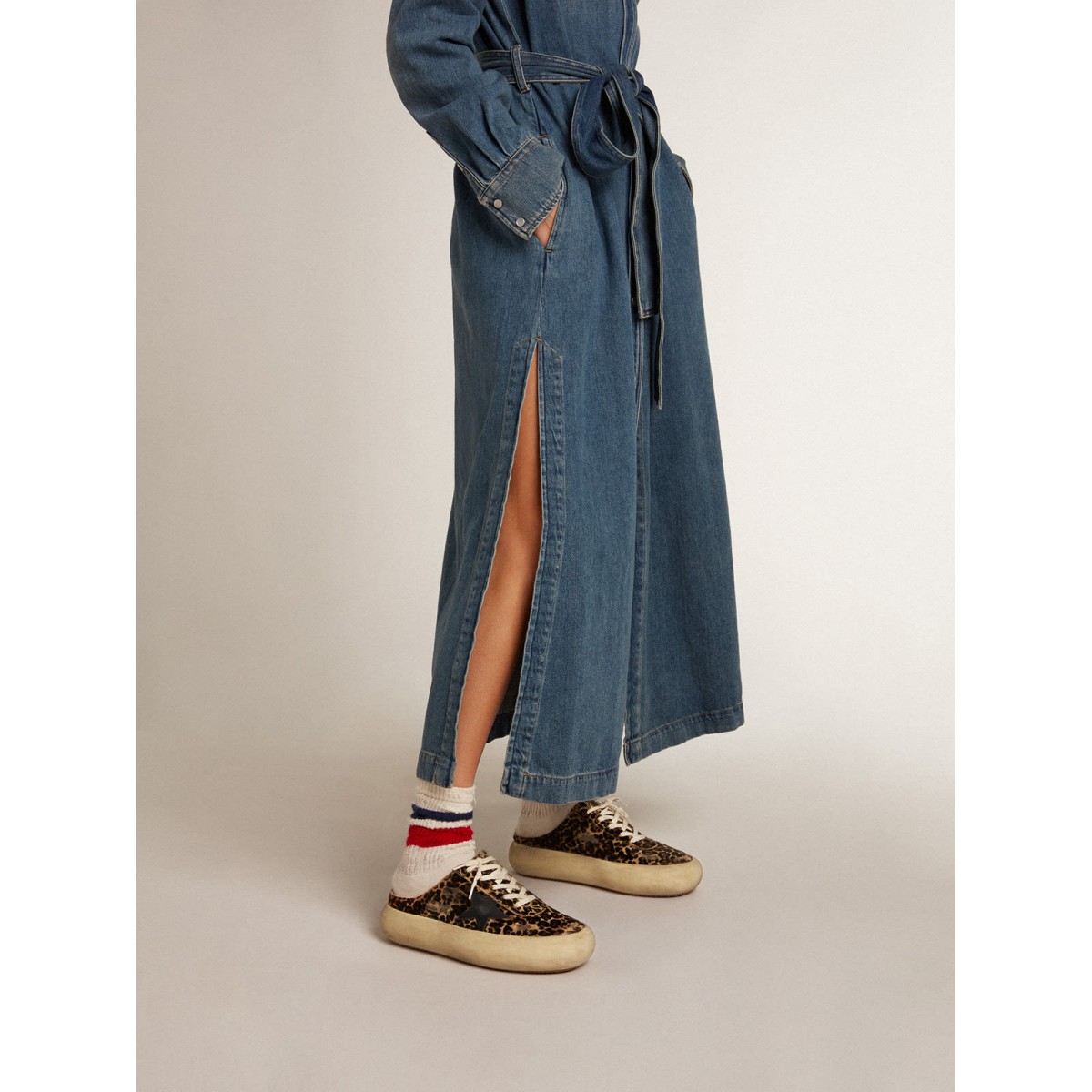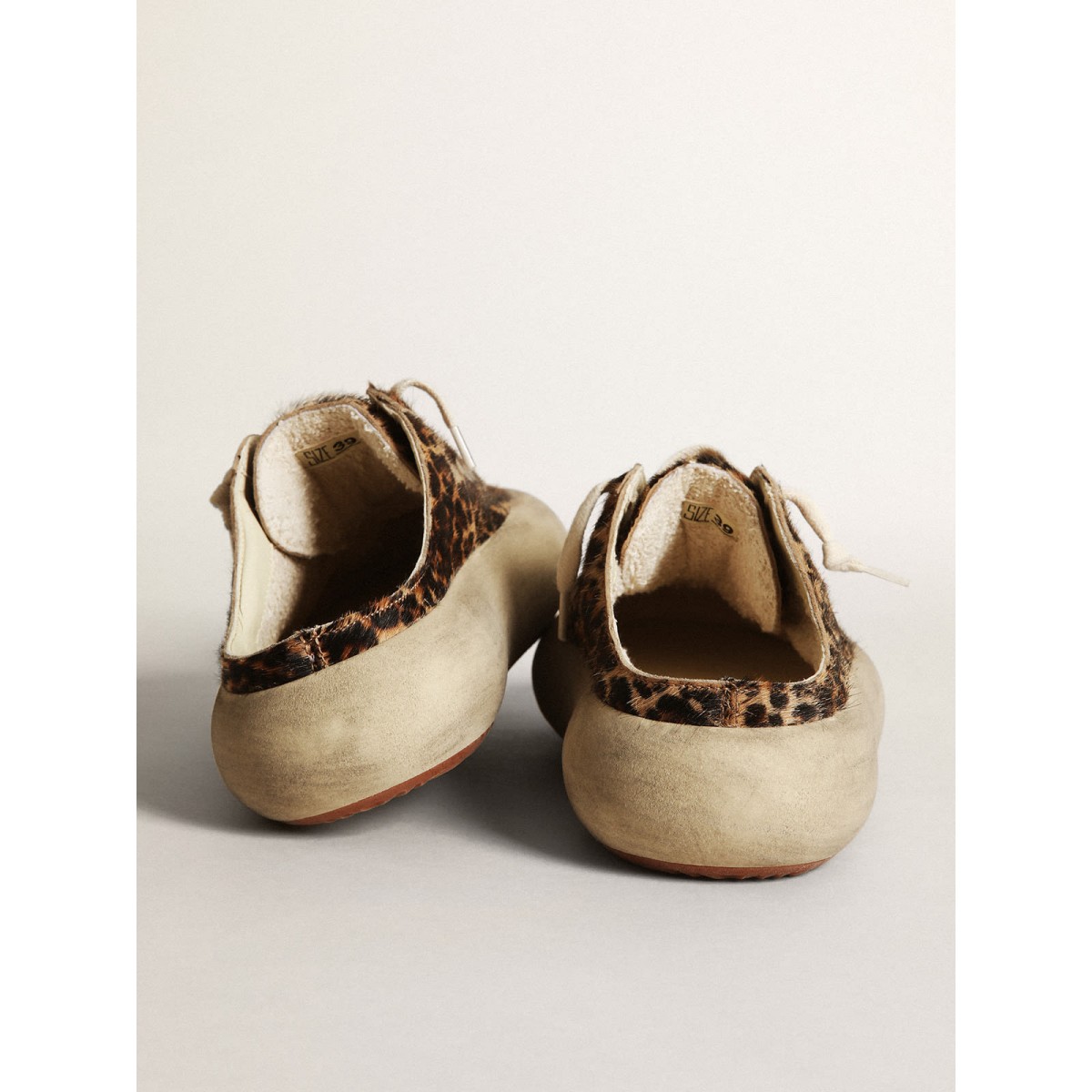 Il tuo nuovo momento per staccare dalla realtà e volare come mai prima d’ora. Avvolto in quell’incredibile sensazione di leggerezza fin dal primo secondo, facendo spazio alla versione più audace di te stesso. Finalmente libera il tuo stile, svuotando la tua mente. Le scarpe Space-Star presentano la suola e la sola imbottiti di memory foam, garantendo comfort senza pari a partire dal primo passo. Questa versione di sabot nella pelle di pony beige e marrone con stampa leopardata presenta una stella in pelle nera e una fodera in pelle morbida. I lacci color crema completano l’aspetto.