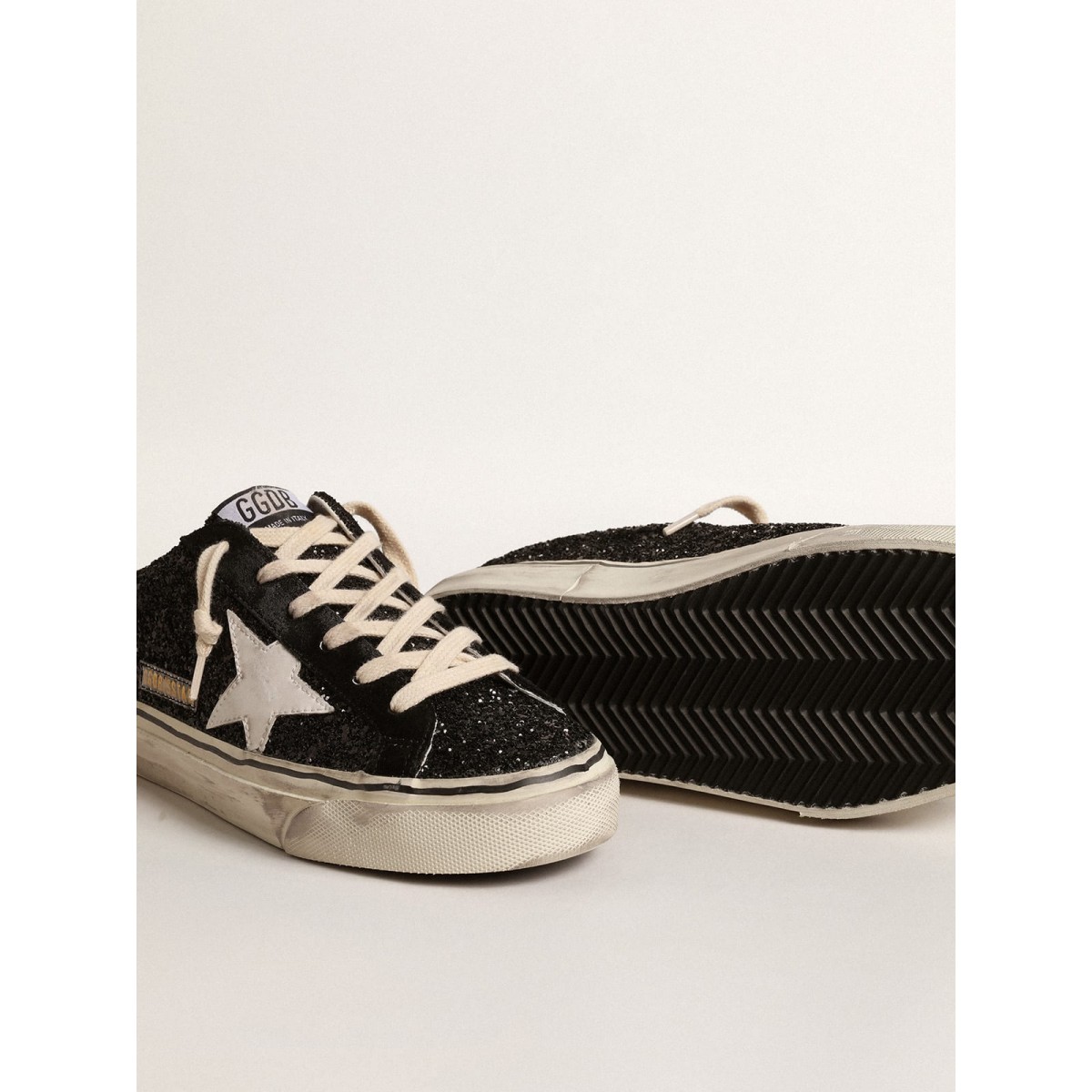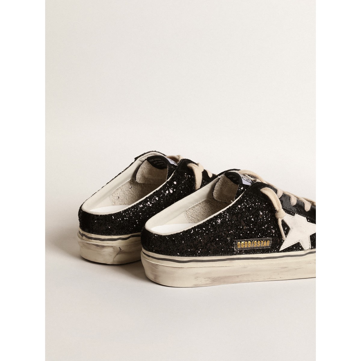 Sabot Golden Goose Super-Star in Black Glitter con stella bianca a base biologica GWF00485.F004546.80203