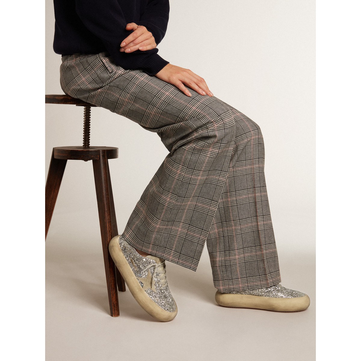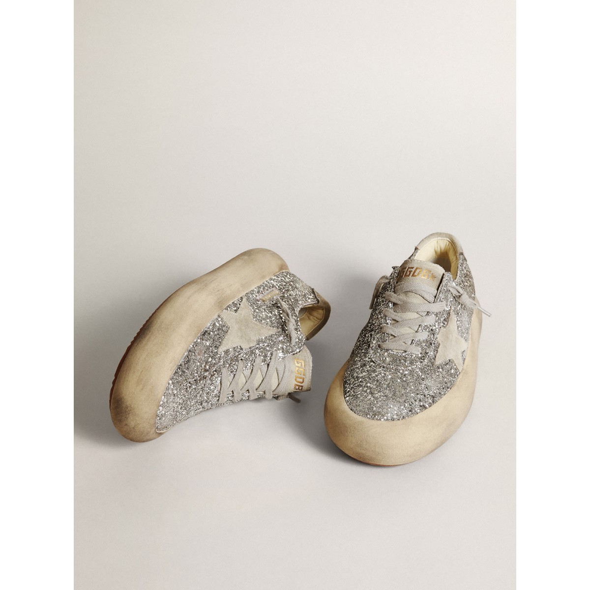 Scarpe a stelo spaziale d’oca dorate in argento con stella in pelle scamosciata grigio ghiaccio e tab tab GWF00378.F003309.70136