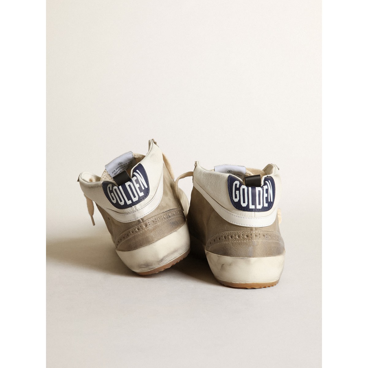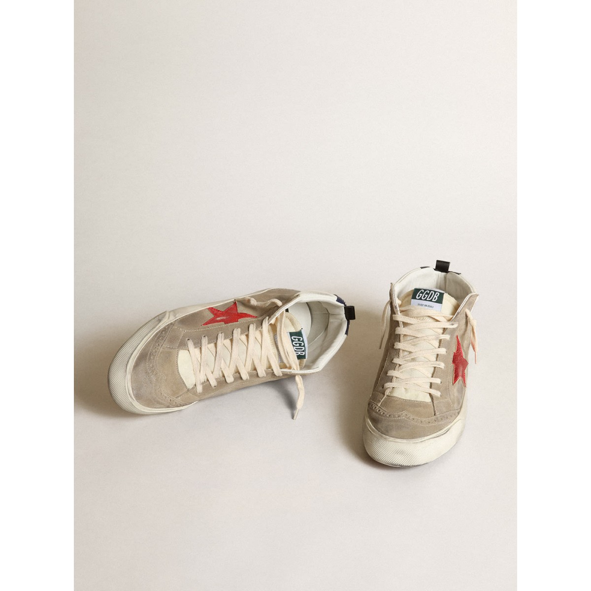 Versatilità univoco elegante: le Scarpe Ginnastica a metà stella adottano un approccio raffinato alla loro ispirazione per la scena di pattinaggio degli anni ’80. Su questo modello, la tomaia in pelle scamosciata grigio-grigio con inserti in pelle Nappa bianca presenta una stella in pelle metallica rossa e una linguetta in pelle blu scuro. Il flash in pelle bianca, i dettagli di broghire e i lacci color crema aggiungono il tocco finale.