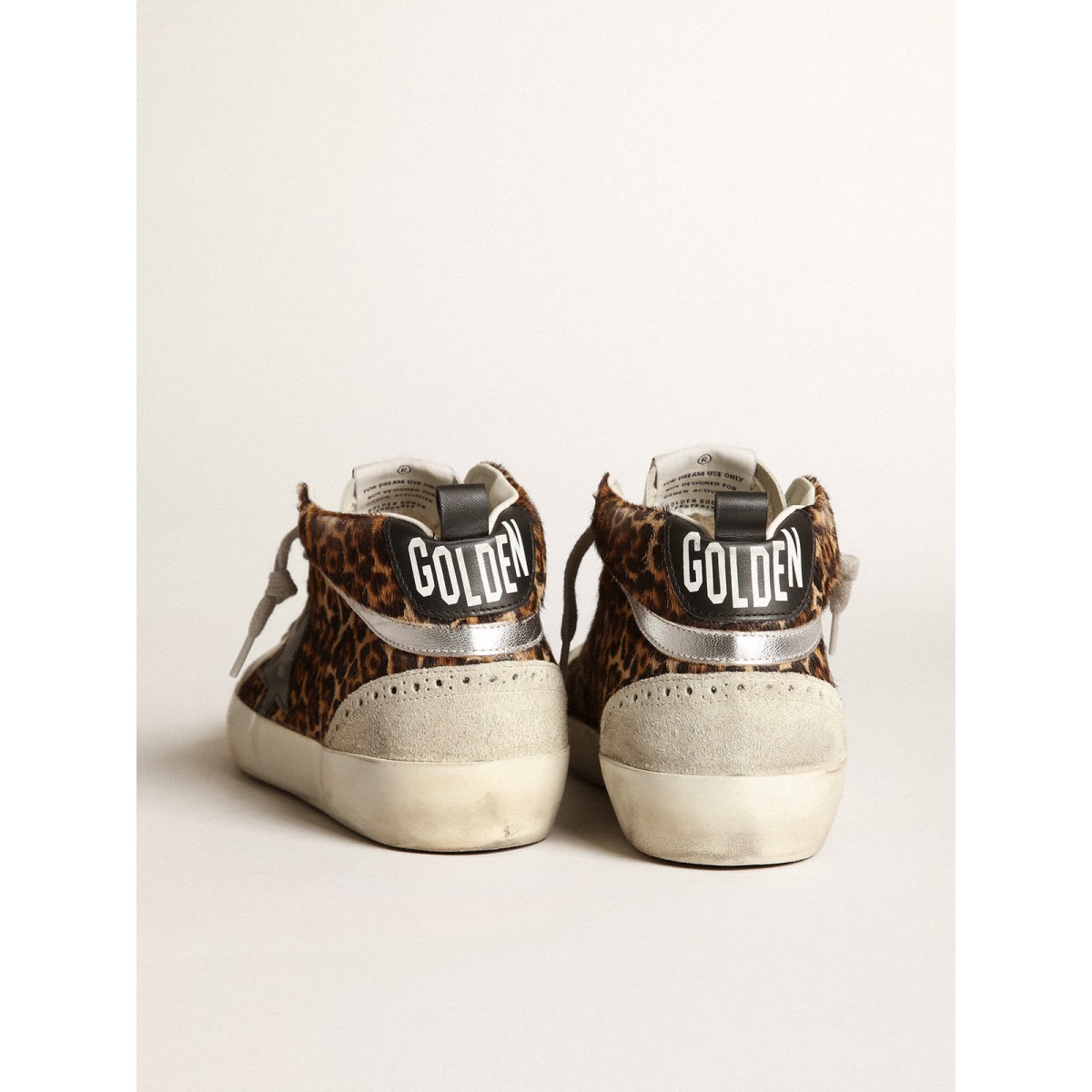 Versatilità univoco elegante: le Scarpe Ginnastica a metà stella adottano un approccio raffinato alla loro ispirazione per la scena di pattinaggio degli anni ’80. Su questo modello, la tomaia per la pelle di pony con stampa leopardata in tonalità beige e marrone presenta una stella in pelle nera e una linguetta di tallone e un flash in pelle laminato in argento. Gli inserti in pelle scamosciata grigio ghiaccio, i dettagli di broghire e i lacci grigi ghiacciati aggiungono il tocco finale.