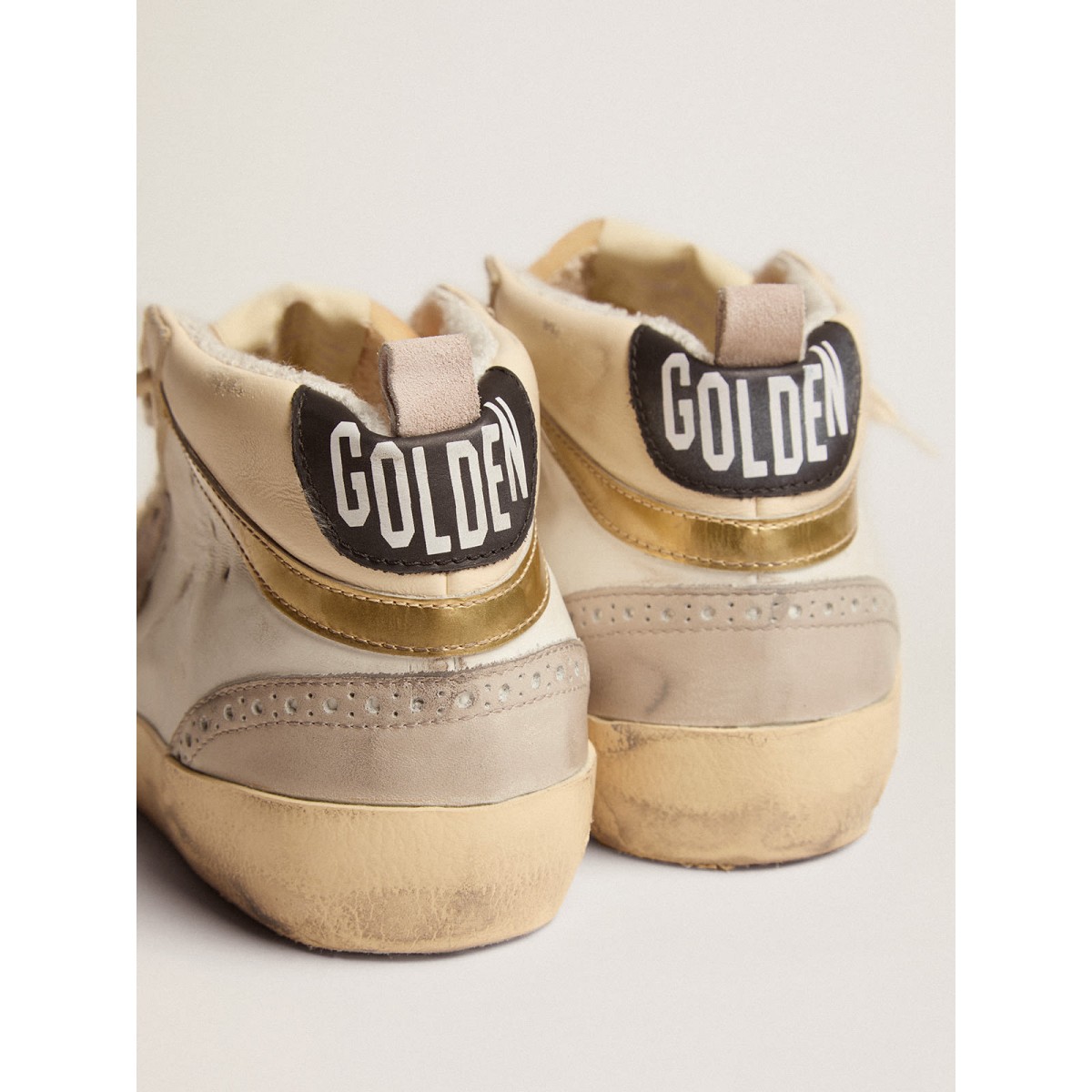 Scarpe Ginnastica a stella centrale d’oca doratura con stella in pelle scamosciata grigio chiaro e flash in pelle d’oro ad effetto cromata GWF00123.F003018.11116