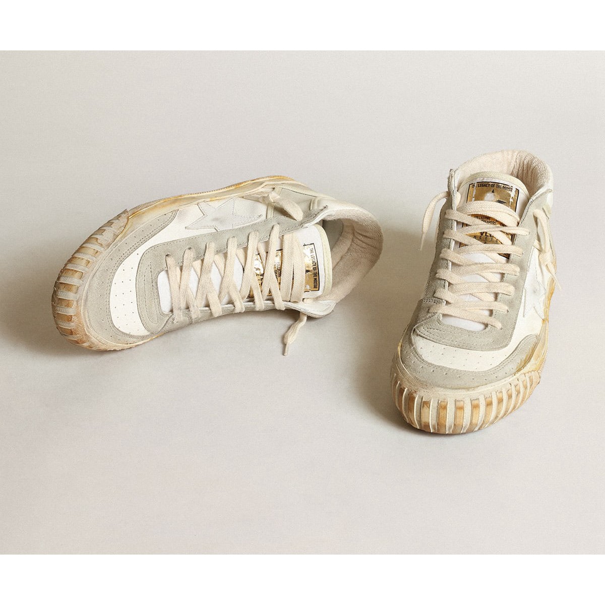 Scarpe Ginnastica a mezza stella maschile d’oro con inserti in pelle scamosciata e grigio ghiaccio e stella bianca GMF00408.F003449.10276
