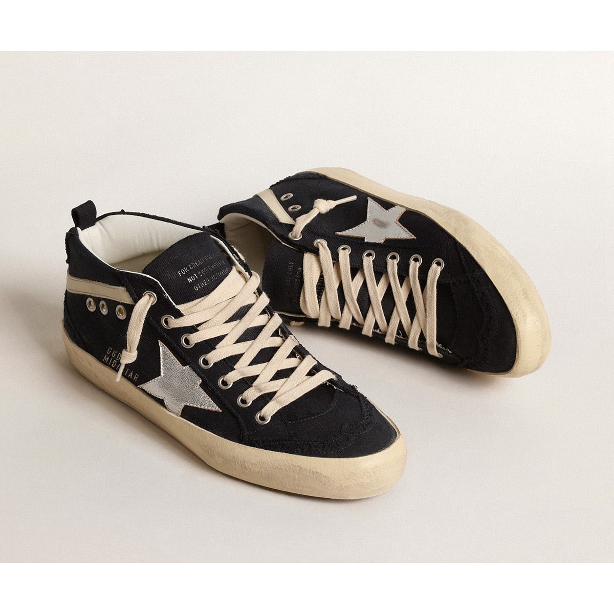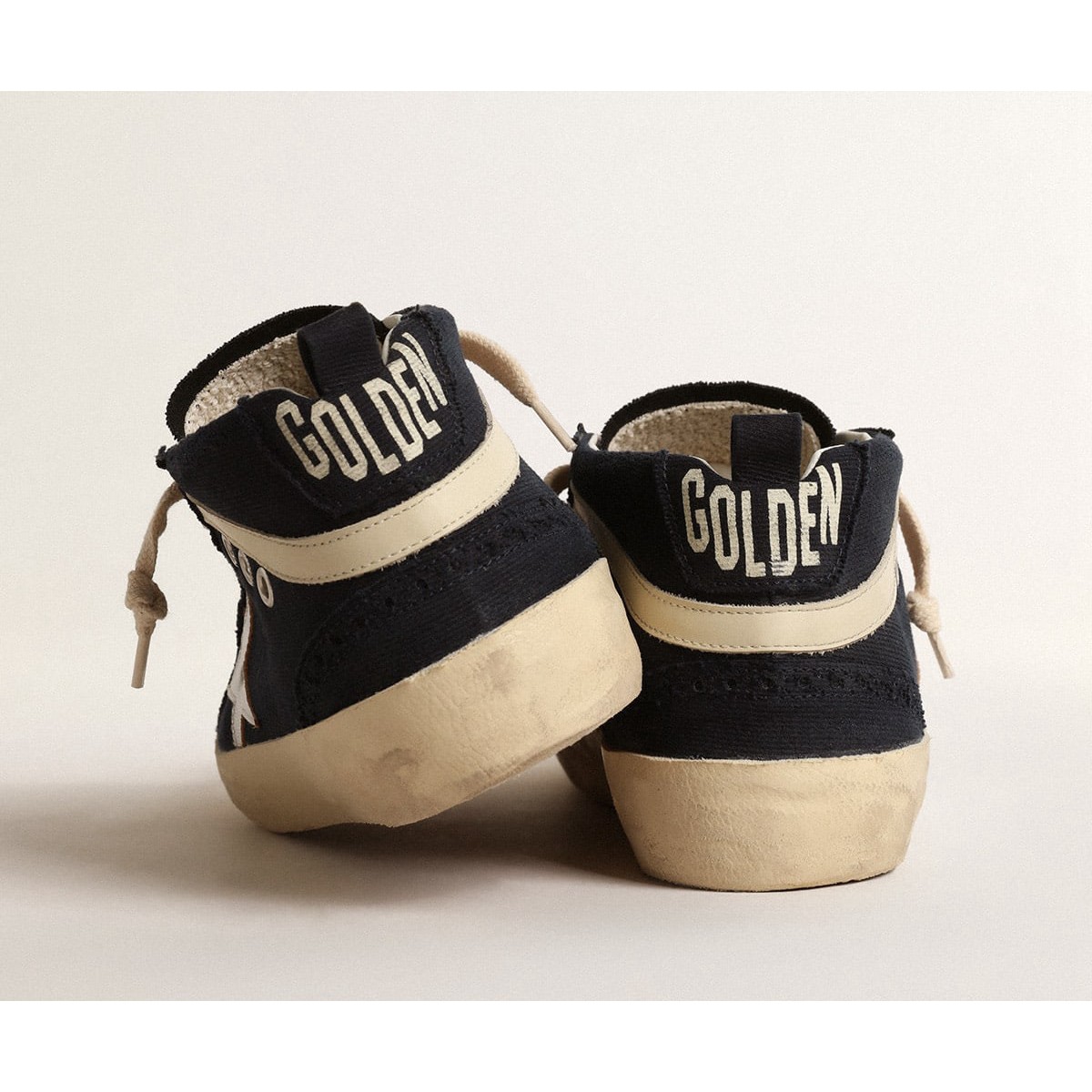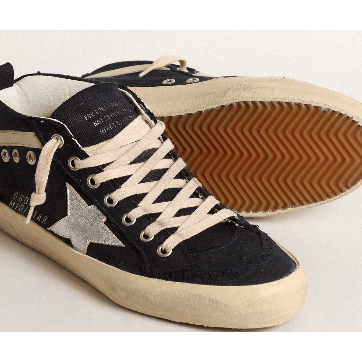 Scarpe Ginnastica a metà stella femminile d’oca d’oro in cotone blu con stella d’argento e flash in pelle GWF00122.F004528.50778