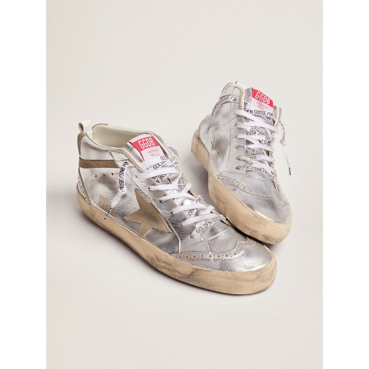 Versatilità univoco elegante: le Scarpe Ginnastica a metà stella adottano un approccio raffinato alla loro ispirazione per la scena di pattinaggio degli anni ’80. Queste scarpe da ginnastica con una tomaia in pelle metallica argentata presentano una stella, una linguetta del tallone e un flash in pelle scamosciata grigio-grigio. Gli inserti in cuoio metallico d’argento con brogio e lacci bianchi con logo nero contrastante completano il look.