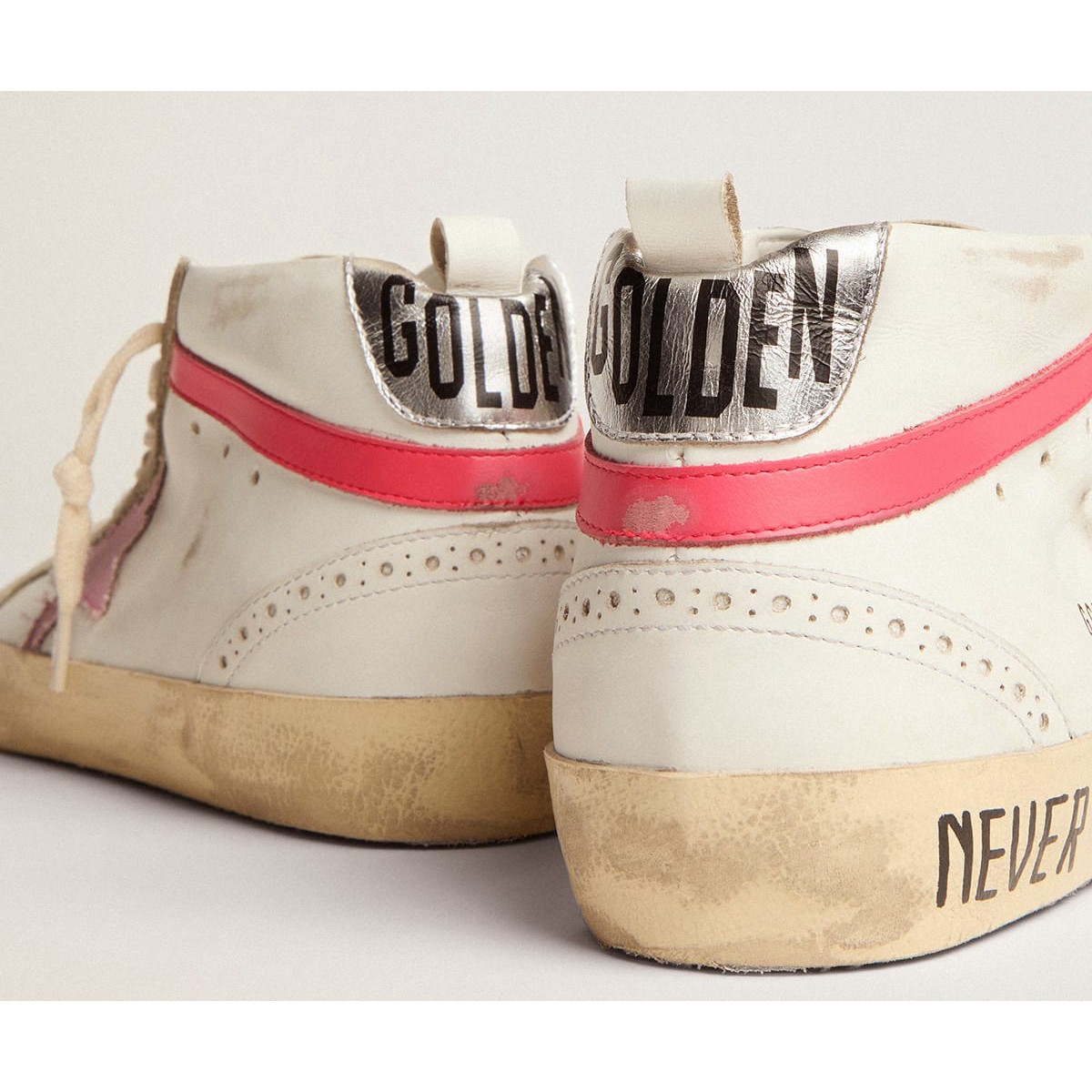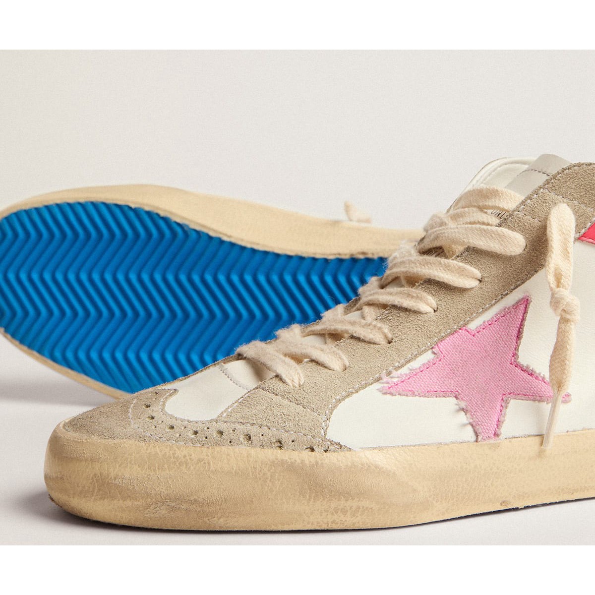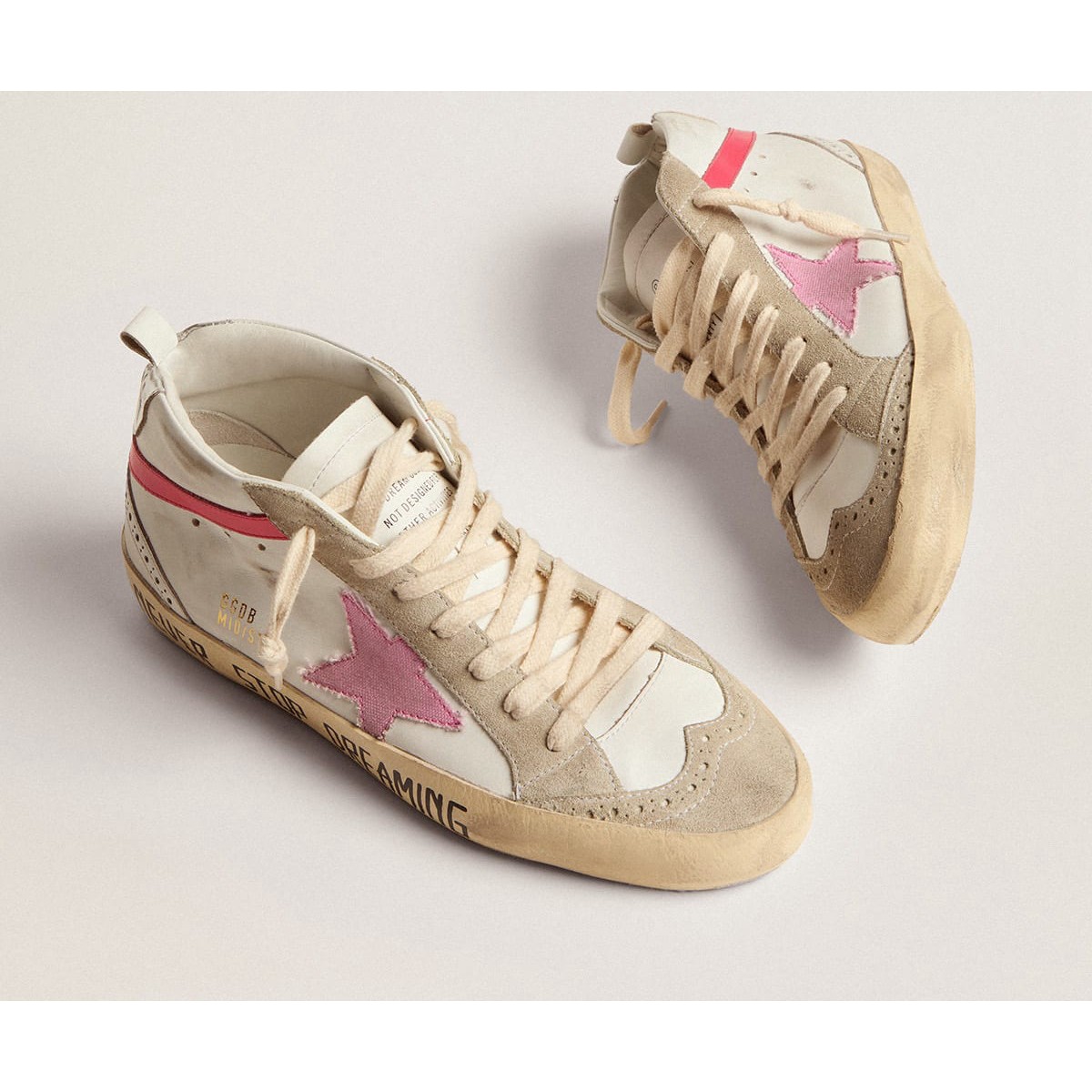 Scarpe Ginnastica a medio stella femminile d’oca d’oro in pelle bianca con stella rosa e lettere nera GWF00122.F002625.10928