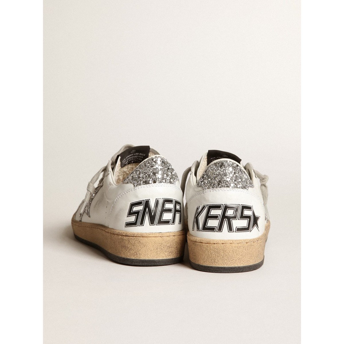 Sognando gli anni Ottanta. Le nostre Scarpe Ginnastica a stella della palla hanno un’atmosfera universitaria americana catturata tra un tiro a cerchio e un giro di skateboard. Questo modello con una tomaia in pelle nappa bianca presenta una stella glitter d’argento e una linguetta del tallone. E i lacci dei grigi ghiacciati aggiungono il tocco finale: cose belle che non passano mai di moda.