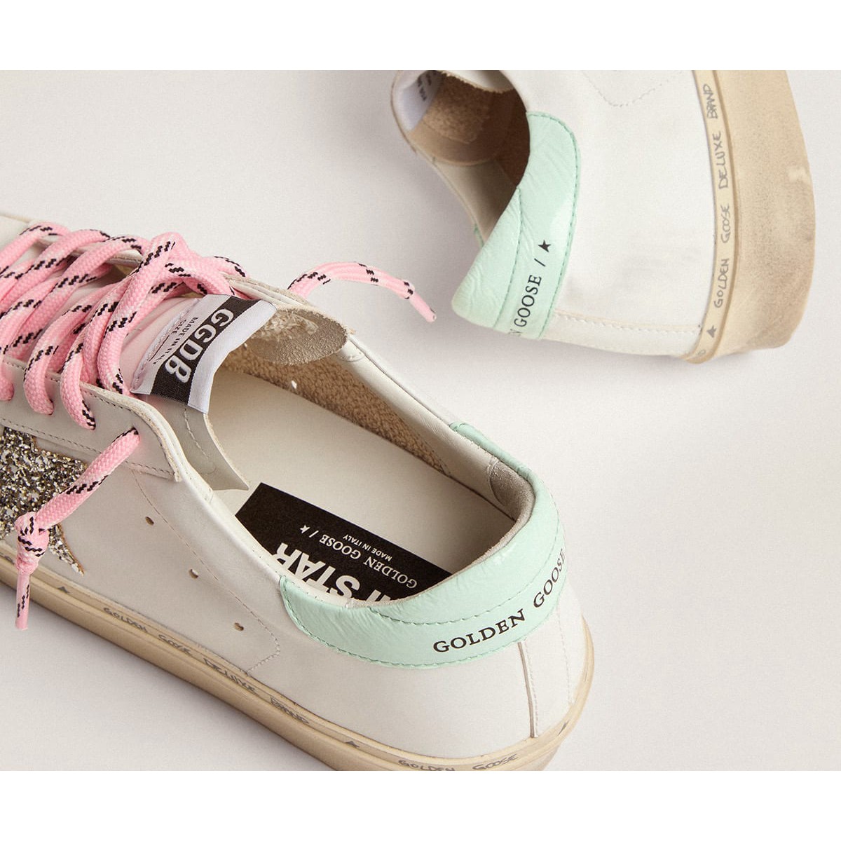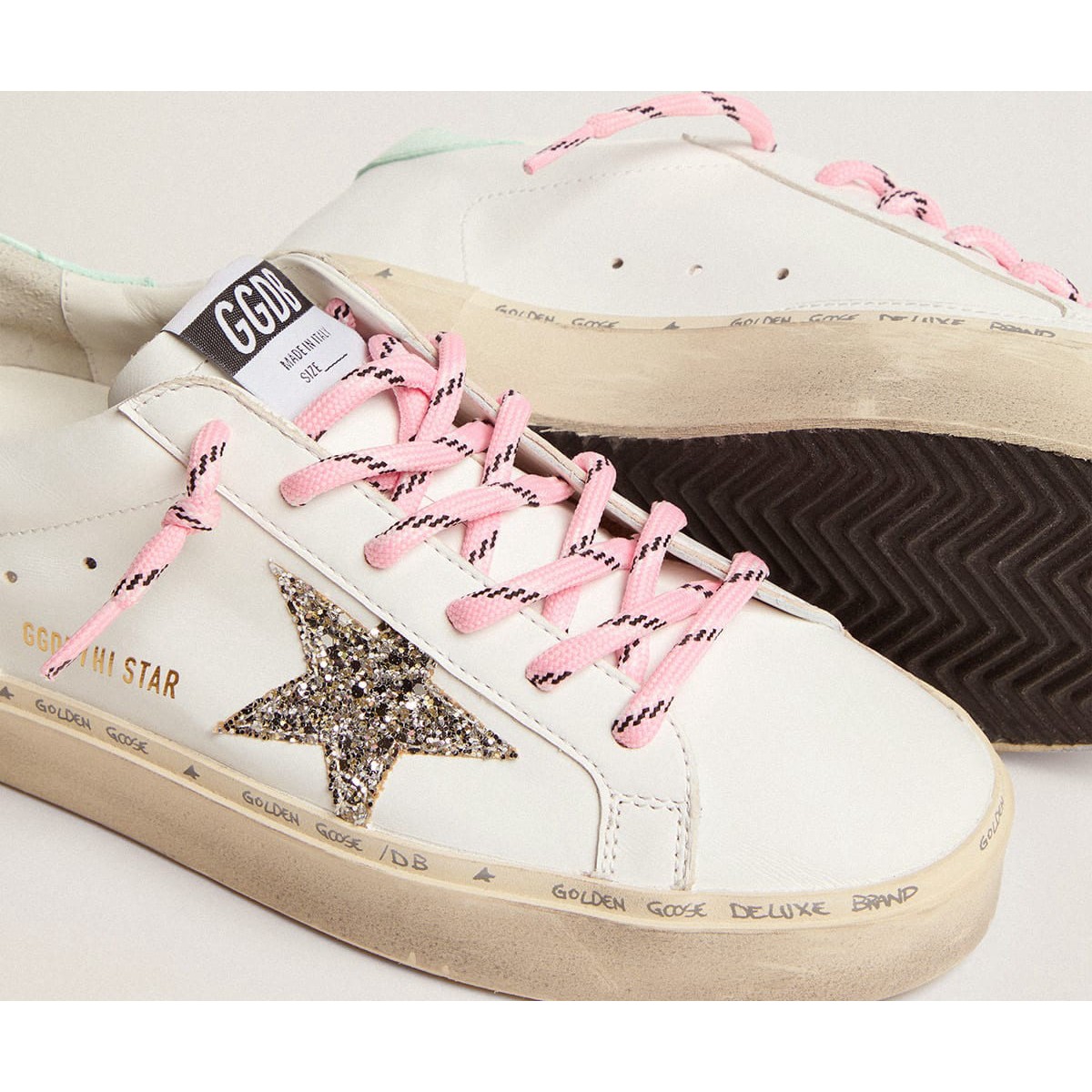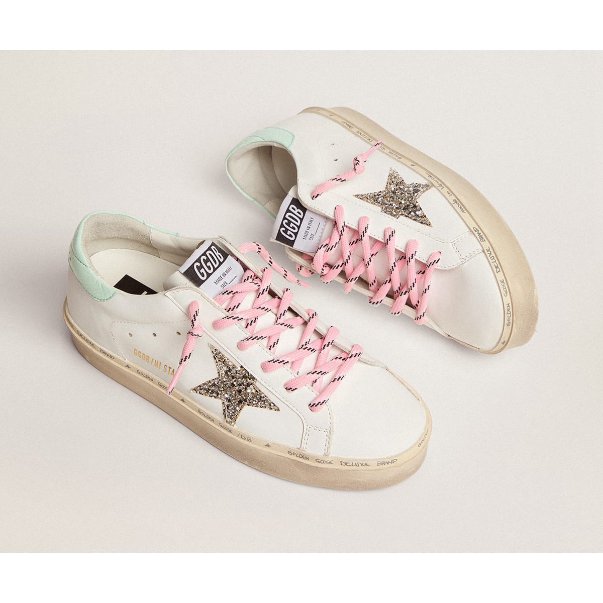 Scarpe Ginnastica Hi Star Women’s Golden Goose con stella glitter e tavolo AQUA Green Heel GWF00118.F002616.10925