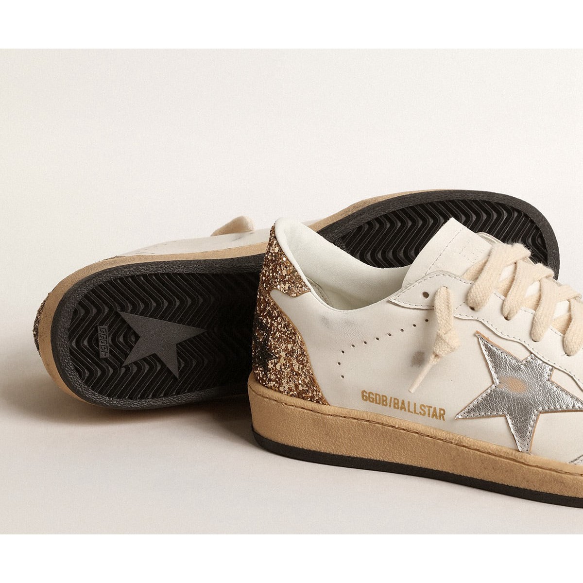 Scarpe Ginnastica a stelle per palla femminile d’oca dorate con stella metallica in pelle e tablo glitter tab GWF00117.F004545.10358