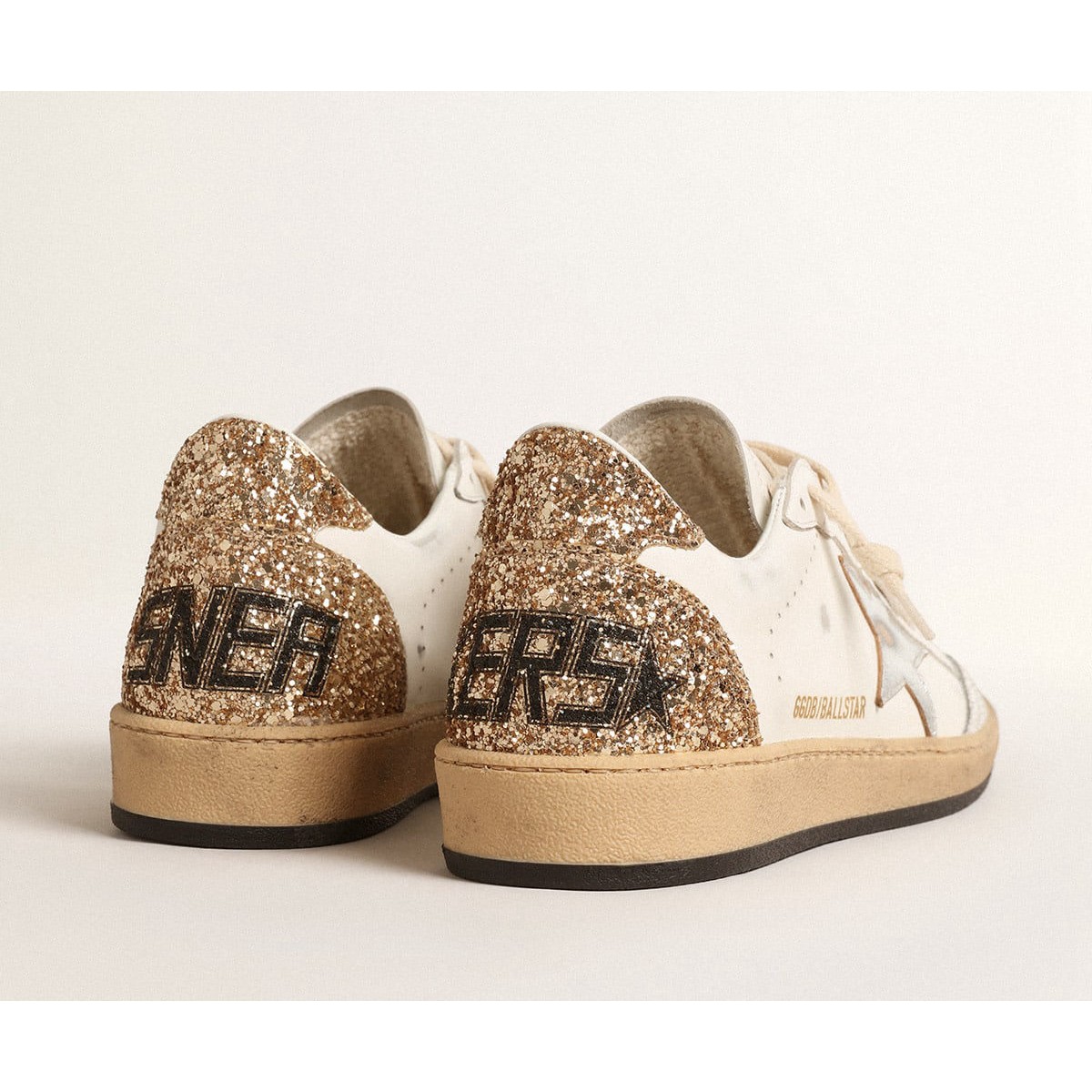 Scarpe Ginnastica a stelle con palla d’oca dorate con stella in pelle metallica e tabellino glitter tab GWF00117.F004545.10358