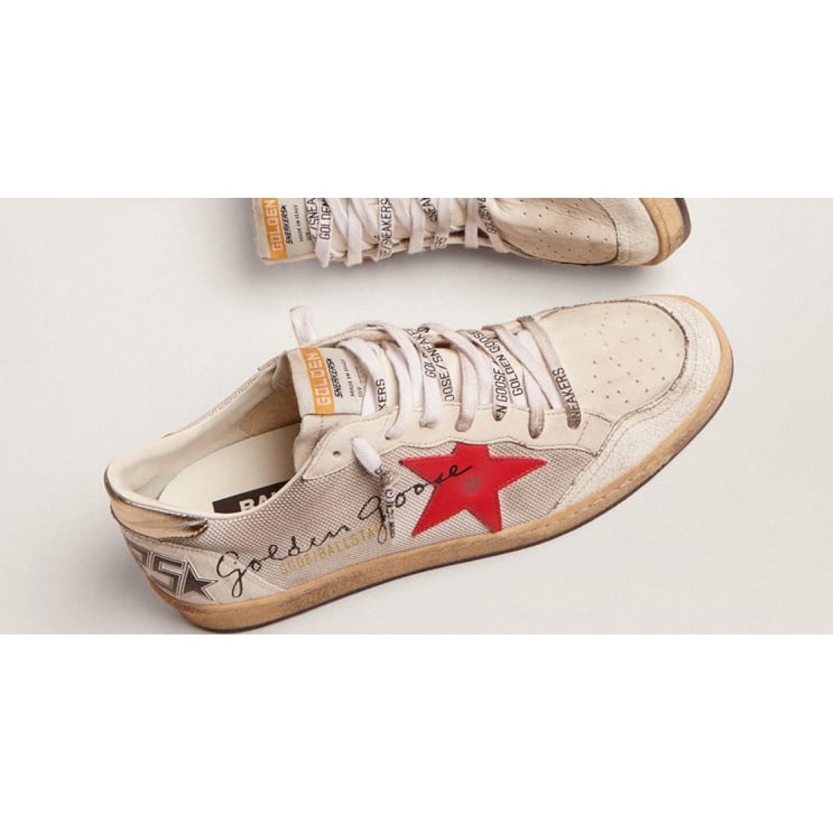 Sognando gli anni Ottanta. Le nostre Scarpe Ginnastica a stella della palla hanno un’atmosfera universitaria americana e una sensazione della scena del basket in quel momento. Questo modello, con una tomaia in mesh argento leggero accentuata da inserti in pelle crackle bianca, presenta una stella in pelle rossa e una linguetta in pelle laminata di colore in platino. Le lettere nera con le lettere d’oca stampato sulla tomaia e i lacci bianchi con logo nero contrastante aggiungono il tocco finale: cose belle che non passano mai di moda.