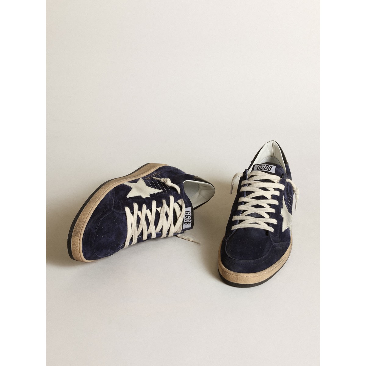 Sognando gli anni Ottanta. Le nostre Scarpe Ginnastica a stella della palla hanno un’atmosfera universitaria americana catturata tra un tiro a cerchio e un giro di skateboard. Questo modello in pelle scamosciata blu scuro con cucitura a contrasto sulla tomaia presenta una stella nubuuck bianca e una linguetta nera del tallone in pelle Nappa. E i lacci bianchi off-bianchi aggiungono il tocco finale: cose belle che non passano mai di moda.