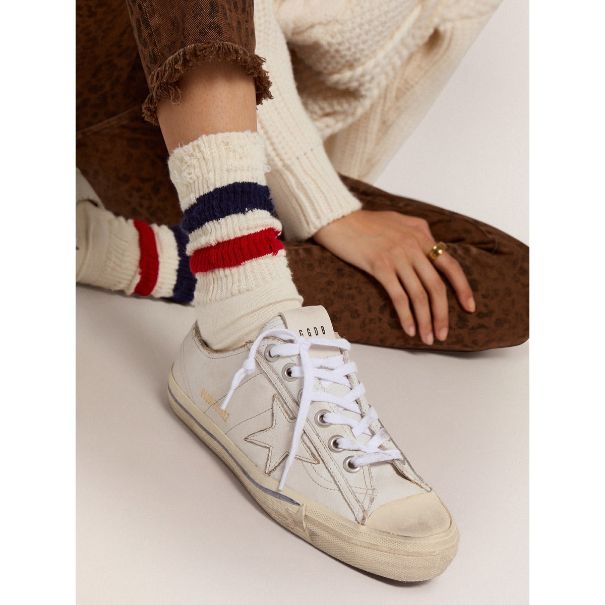 Il design iconico e senza tempo di queste Scarpe Ginnastica è aggiornato in una chiave contemporanea. I nostri V-Stars, ispirati al basket degli anni ’70, presentano linee minimaliste con un cappuccio di punta di gomma. La tomaia, composta interamente dalla pelle, rivela piccole aree usurate ottenute usando la nostra finitura vintage fatta a mano, adottando il concetto di “imperfezione perfetta”.