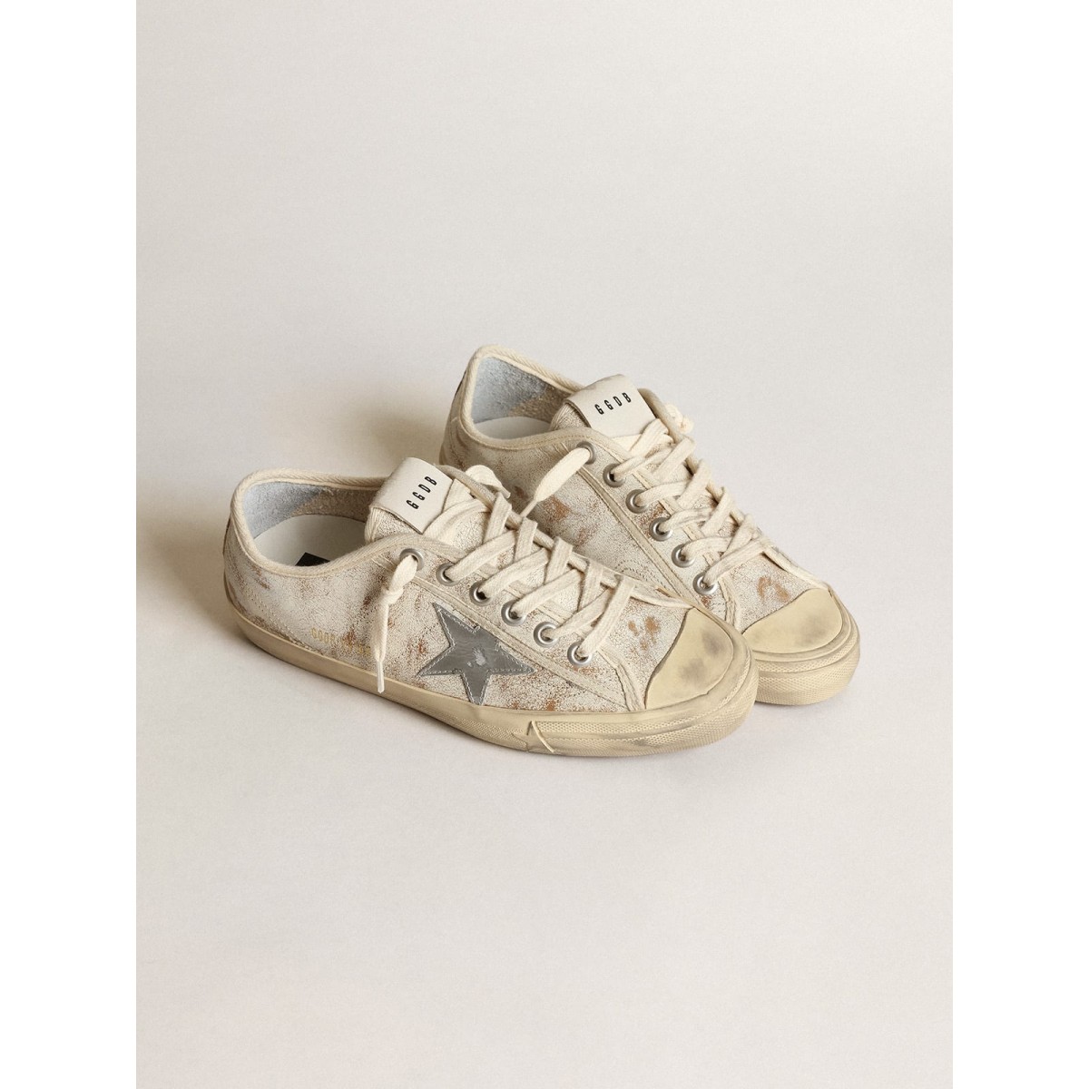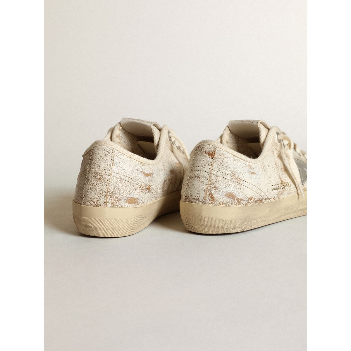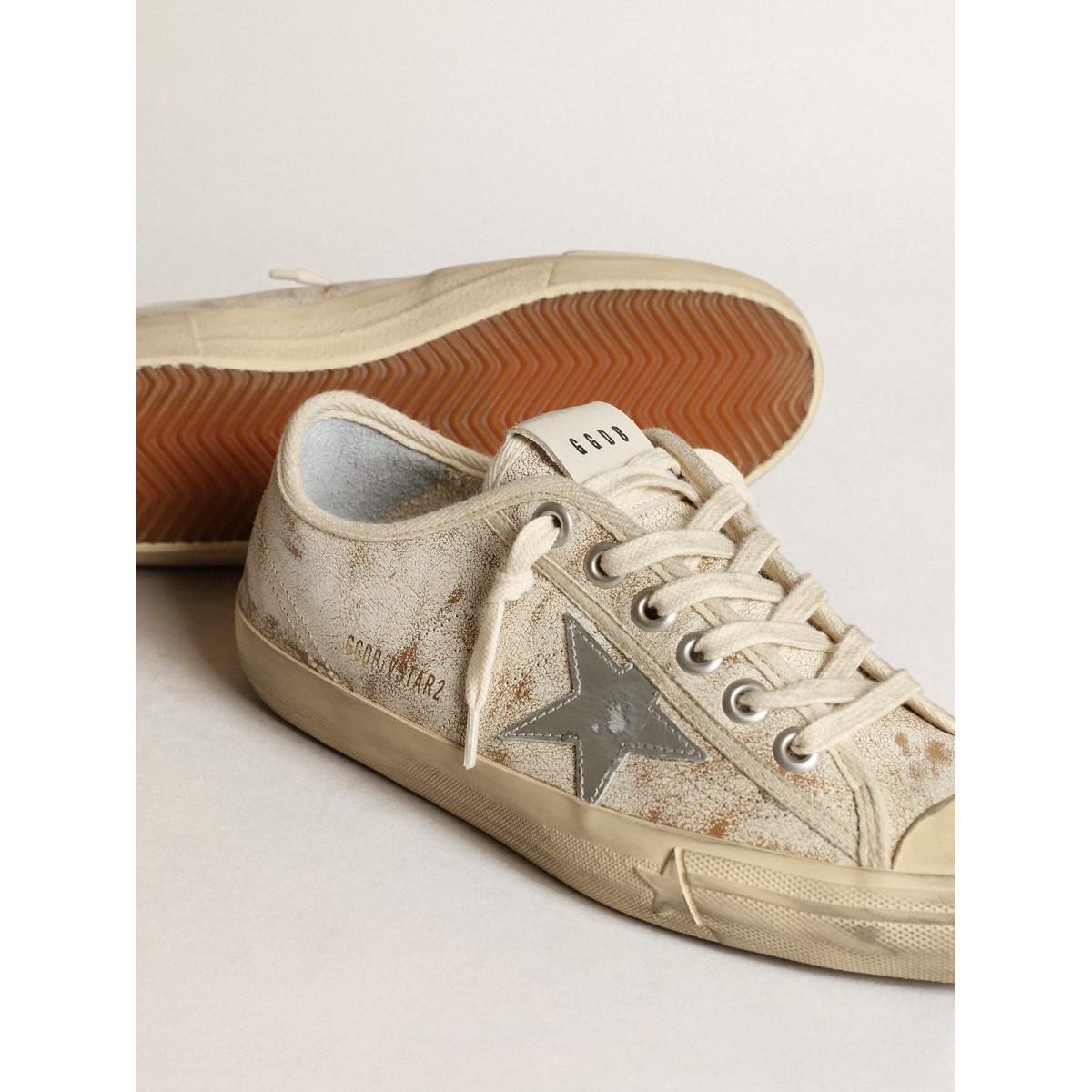 La bellezza che sta nella semplicità: nelle nostre Scarpe Ginnastica a V-Star, una forma essenziale incontra dettagli eleganti. Questo modello con tomaia in pelle bianca lucida con effetto logoro e tonalità beige presenta una stella in pelle metallica argentata. Il rivestimento e i lacci di grosio color crema aggiungono il tocco finale.