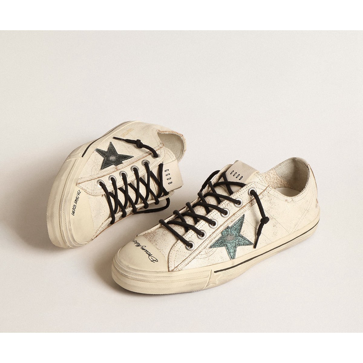 Scarpe Ginnastica a V-star maschile d’oro d’oro in pelle lucida con stella metallica di crackle verde crackle GMF00129.f004610.11527