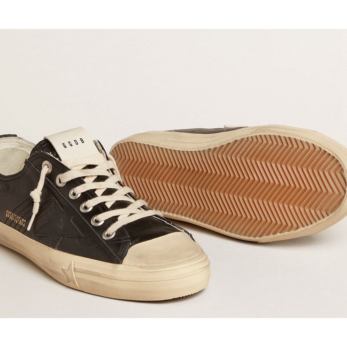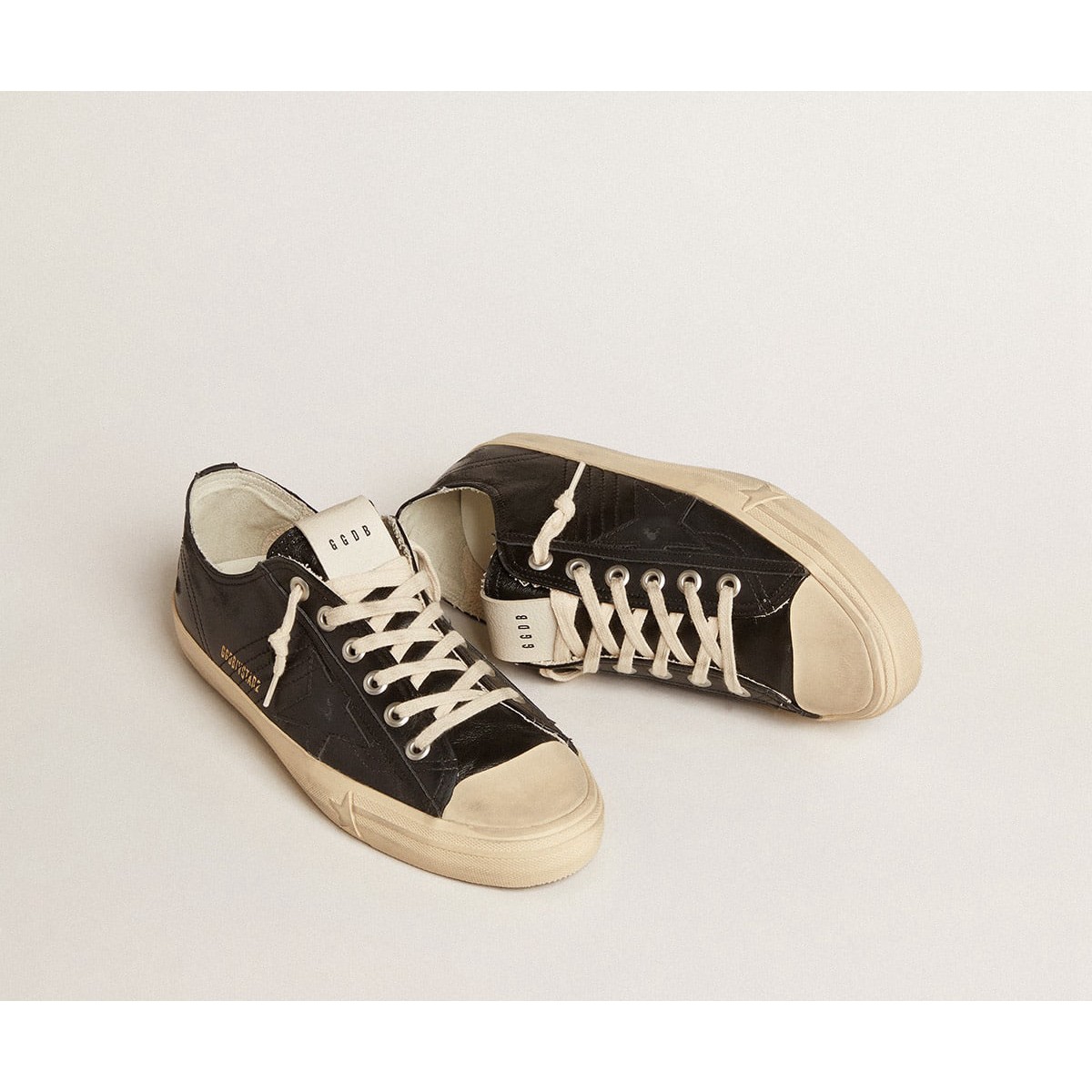 Scarpe Ginnastica a V-star maschile d’oro in pelle nappa nera con una stella in pelle nera GMF00129.f005033.90100