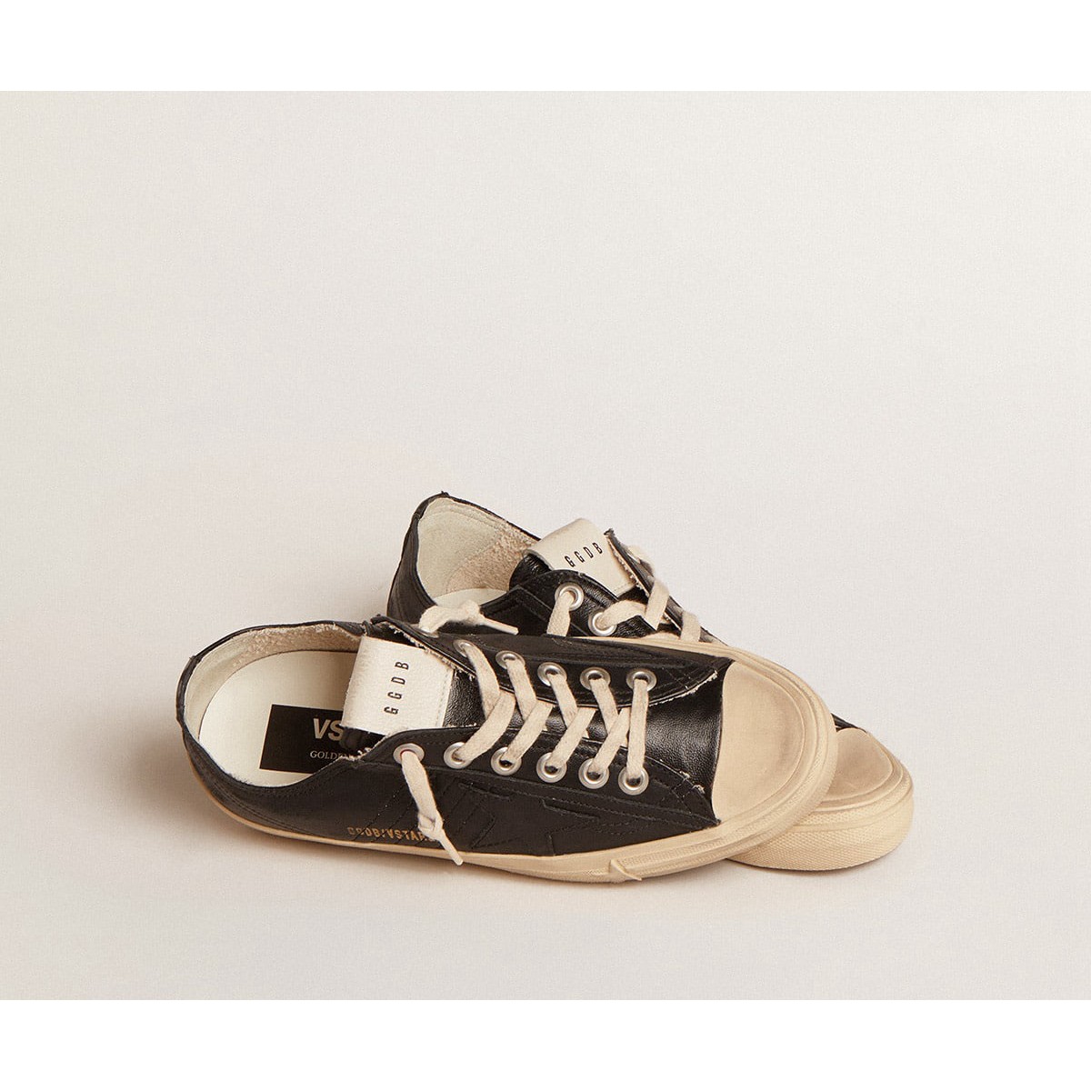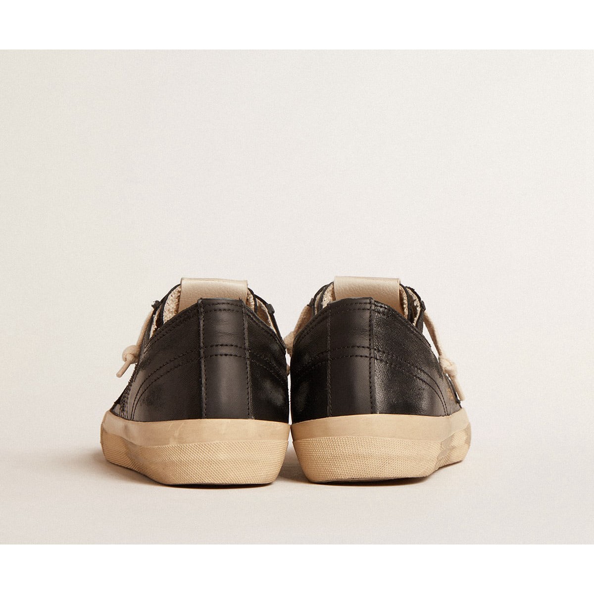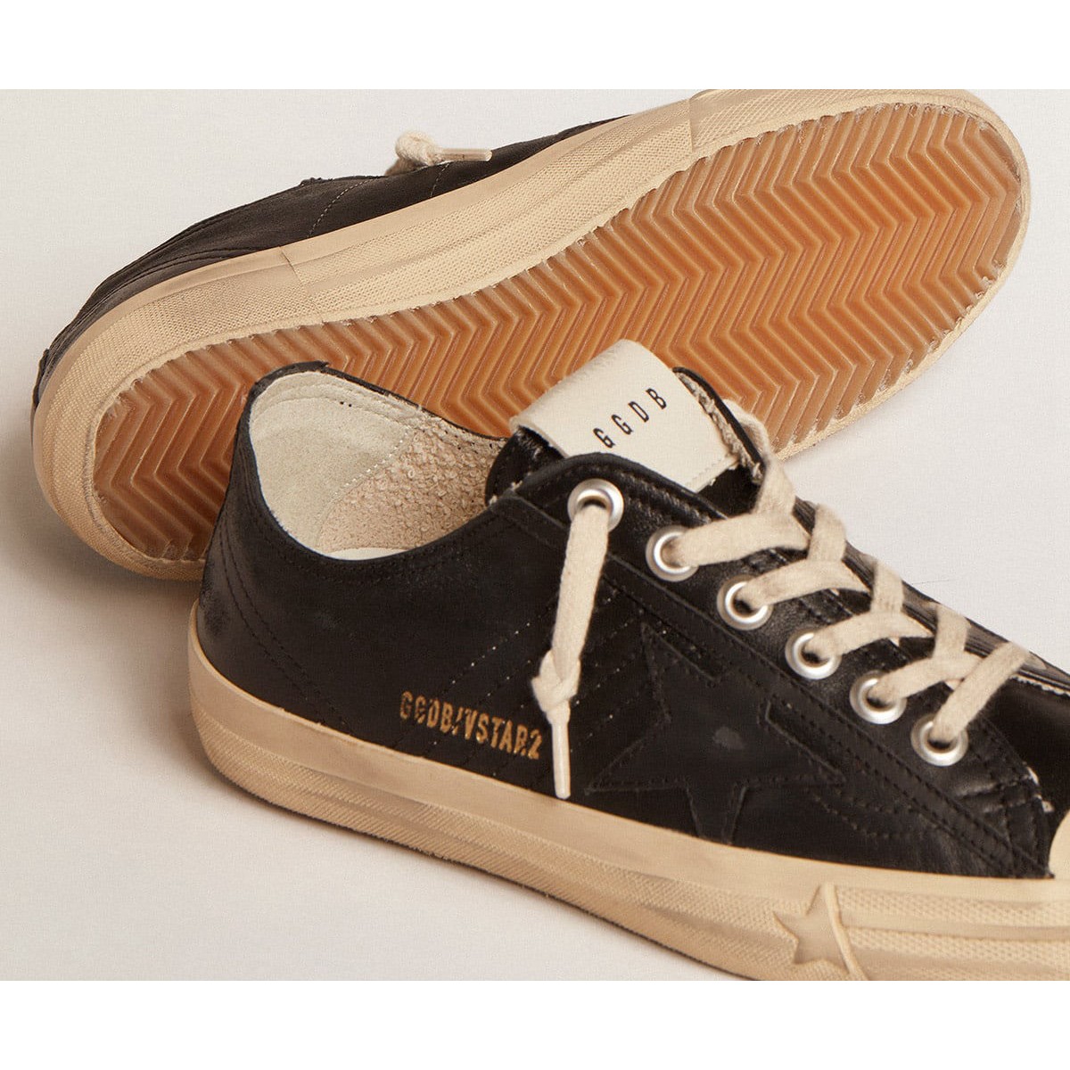 Scarpe Ginnastica a V-Star femminile d’Ora dorata in pelle nappa nera con una stella in pelle nera GWF00129.F005033.90100