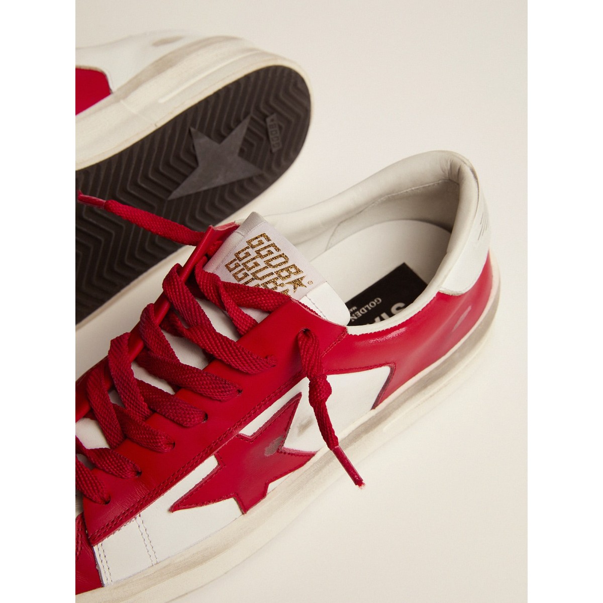Scarpe Ginnastica di stardan d’oca dorate in pelle rossa e bianca GMF00128.F002186.10350