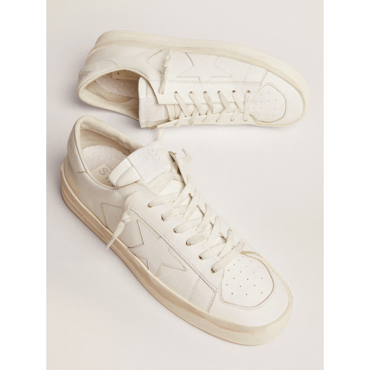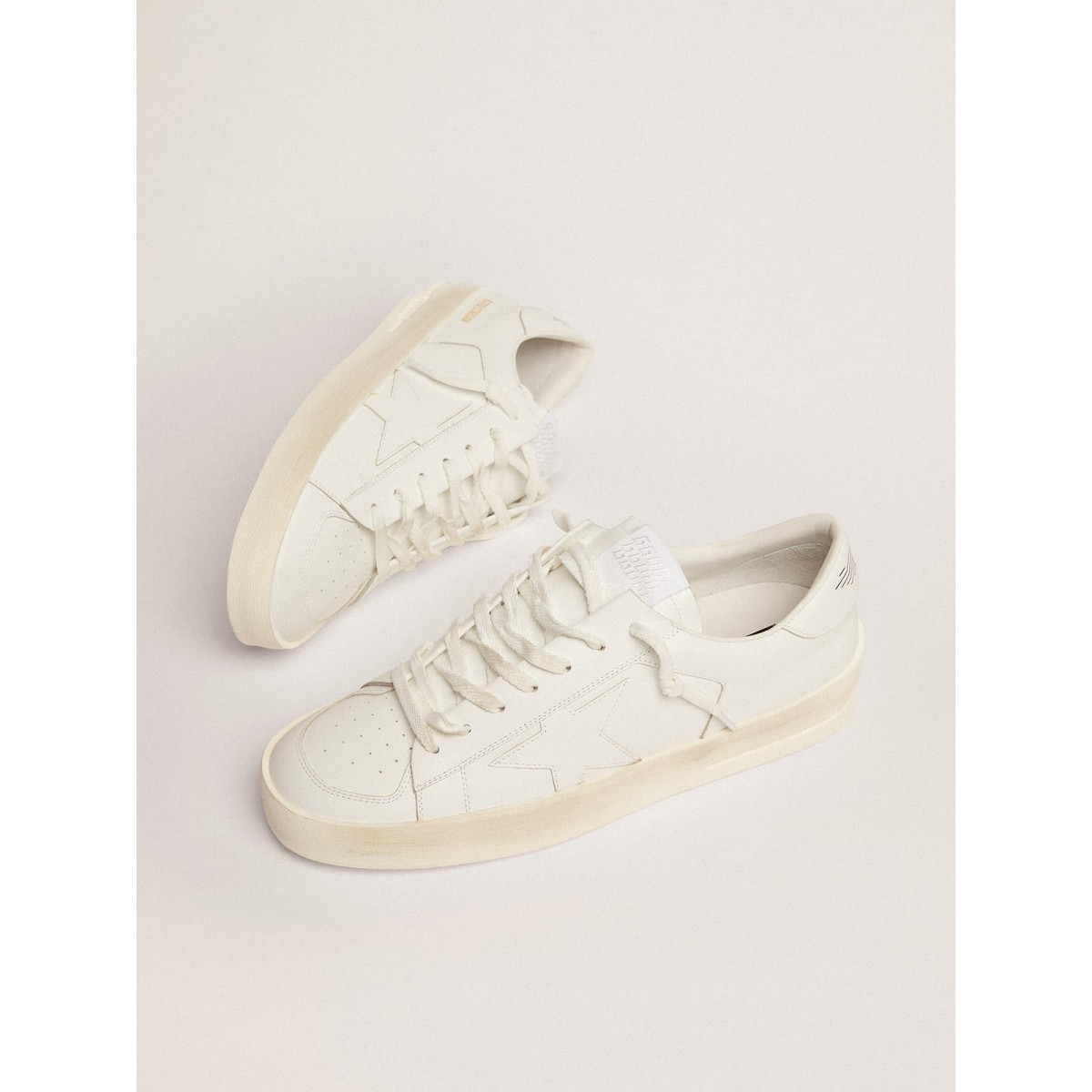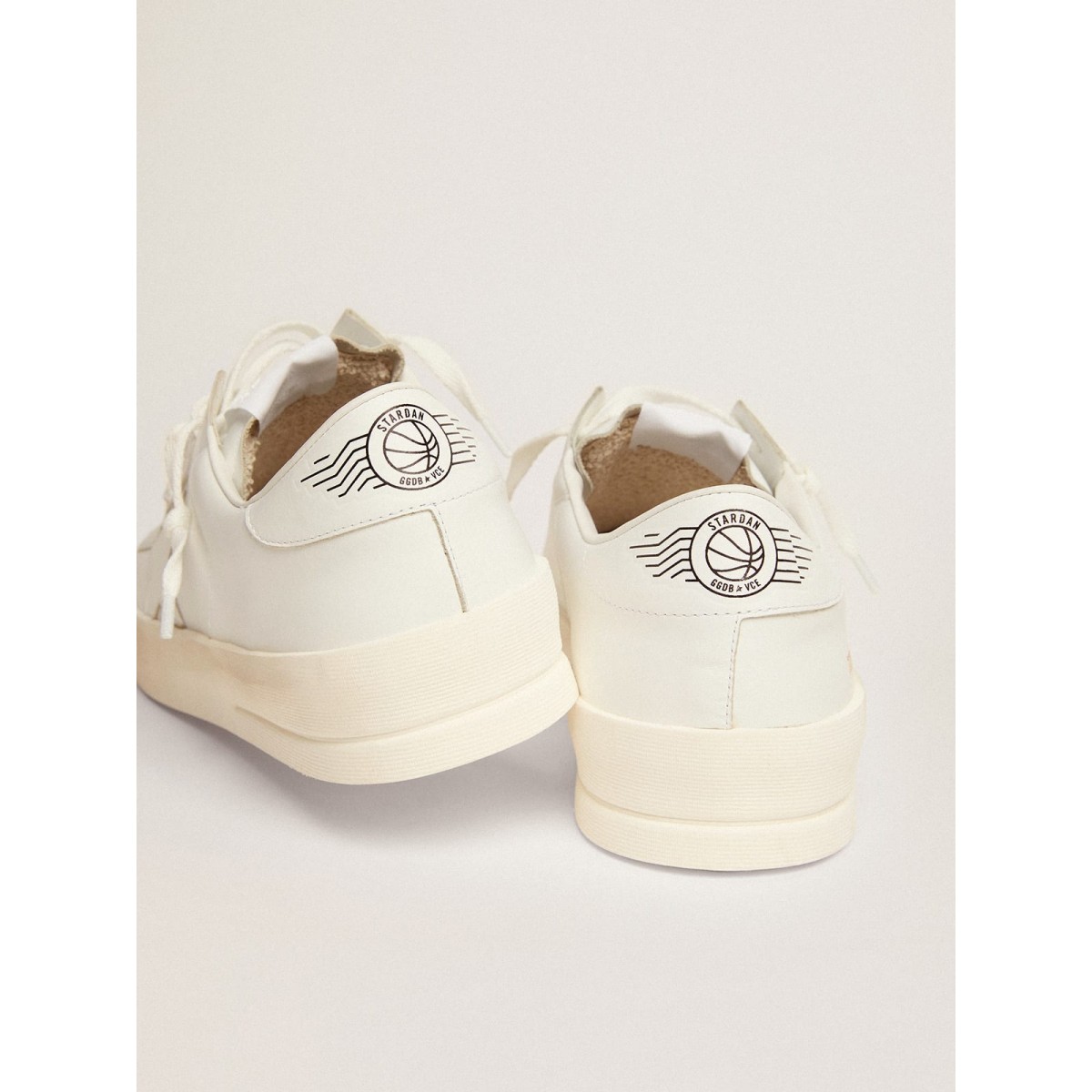 Le scarpe da ginnastica Stardan sono ispirate alle icone di basket degli anni ’90: il forte legame con il senso di nostalgia è visto nel loro look retrò, accennando ai ricordi passati allo stesso modo di una vecchia cartolina. Questa versione minimalista maschile è realizzata in pelle bianca totale, uno stile da indossare ogni giorno grazie al suo aspetto decisamente versatile.