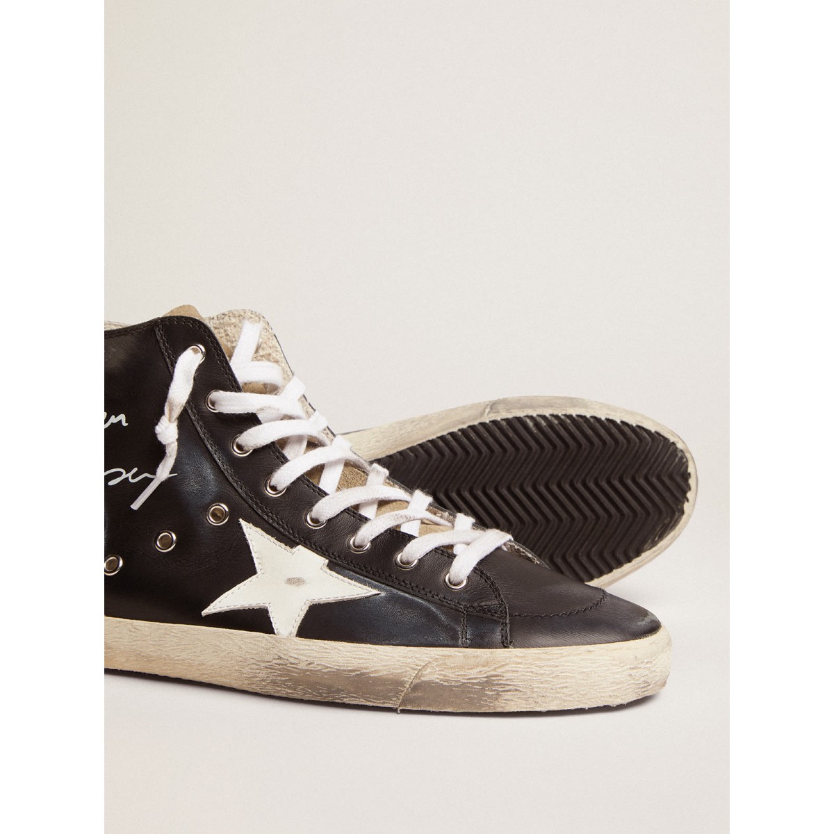 Scarpe Ginnastica francesi d’oca dorate con stella in pelle tomaia e bianca in pelle nera GWF00113.F002783.90313