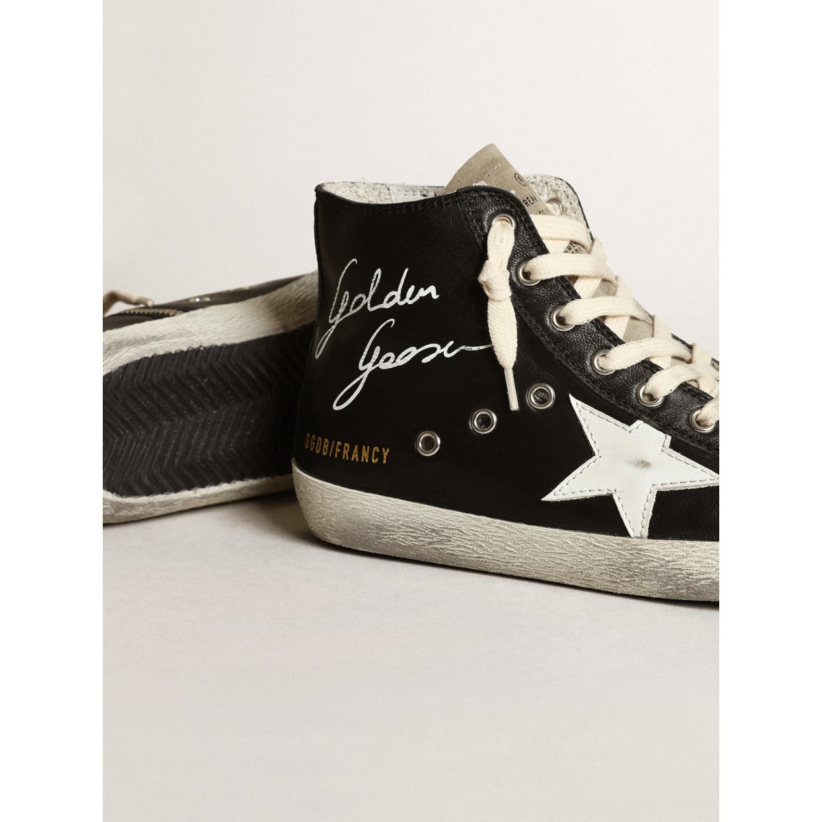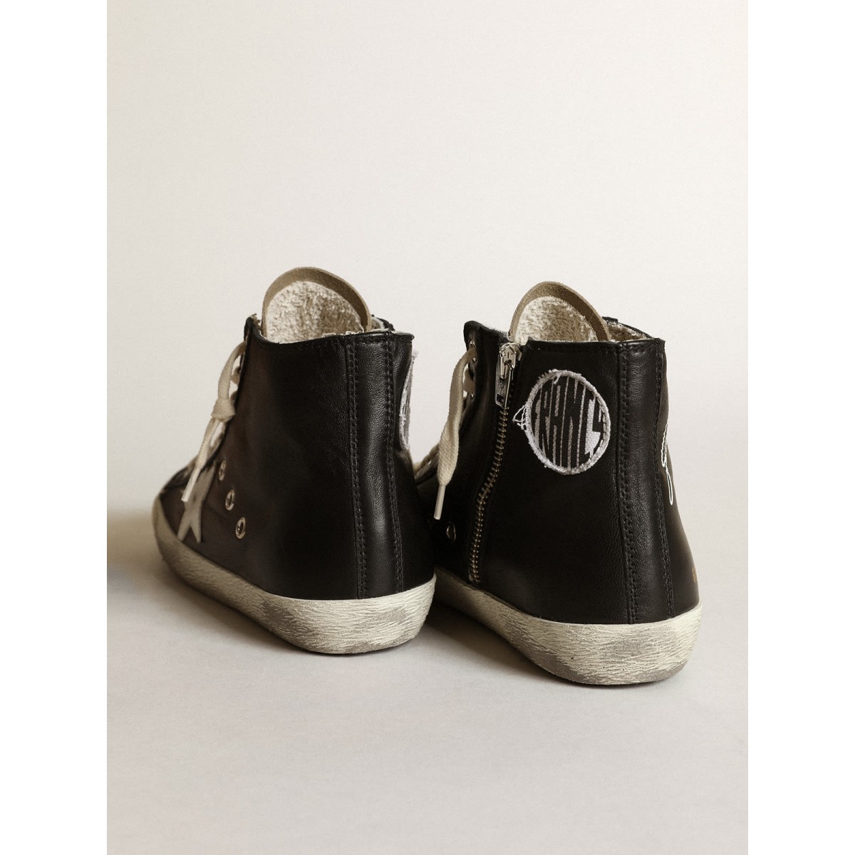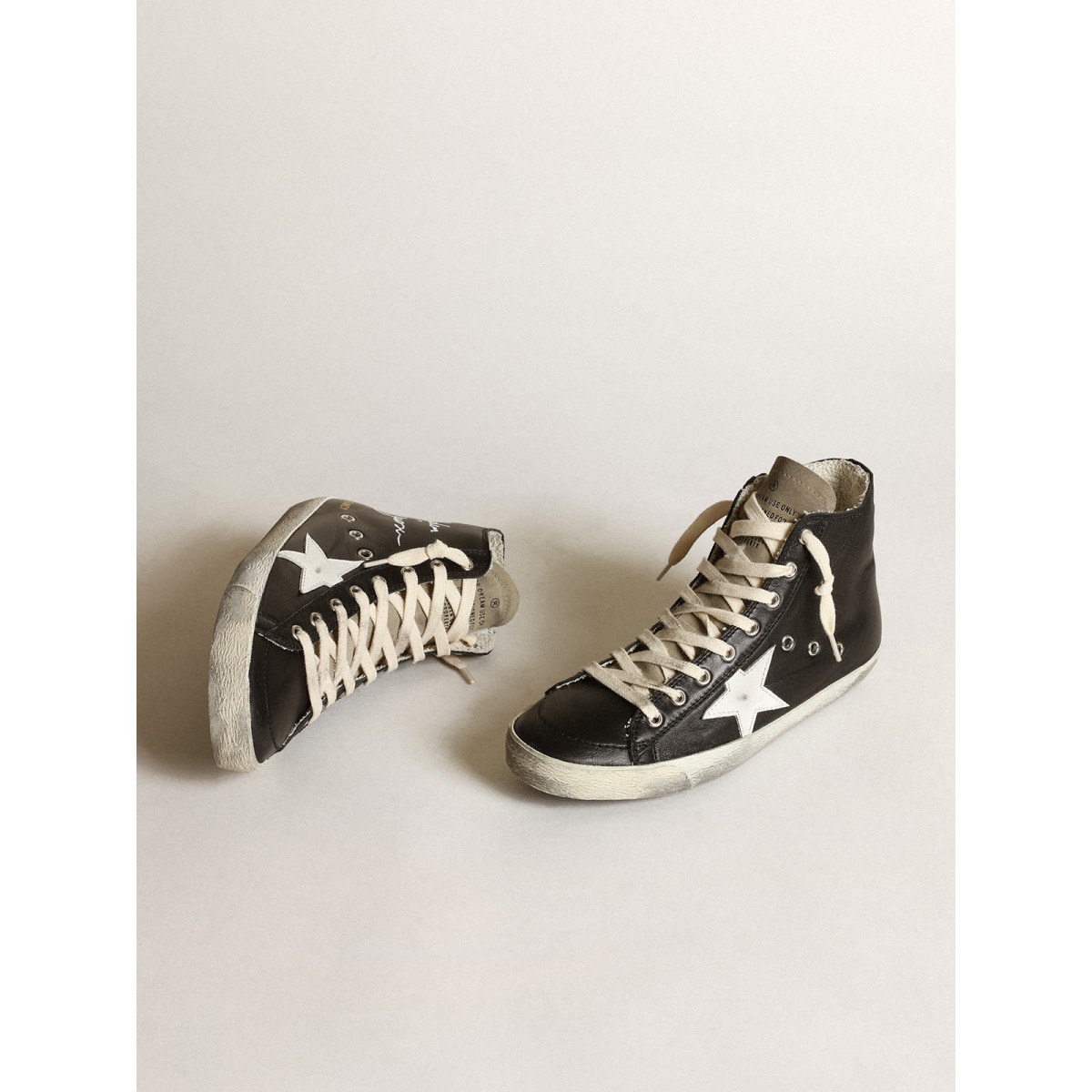Scarpe Ginnastica francesi d’oca doratura in pelle nappa nera con stella in pelle bianca e lingua in pelle scamosciata grigio grigio gwf00113.f003385.90313