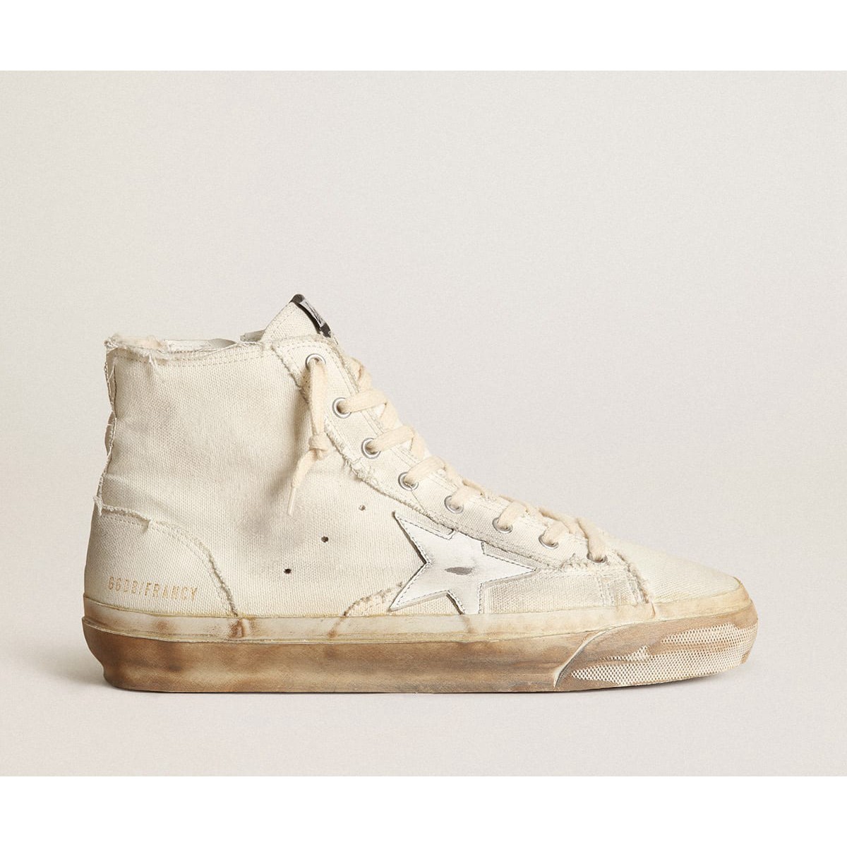 Scarpe Ginnastica francesi d’oca d’oro in tela avorio con stella in pelle bianca GMF00337.F003448.15385