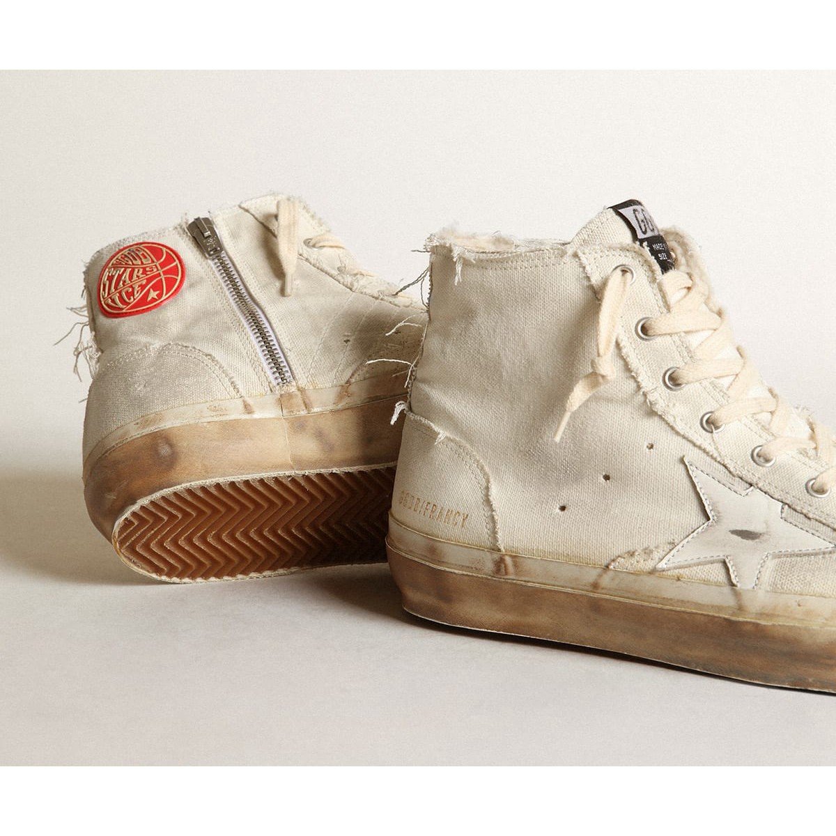 Recensisci per primo “Scarpe Ginnastica francesi d’oca d’oro in tela avorio con stella in pelle bianca GMF00337.F003448.15385”