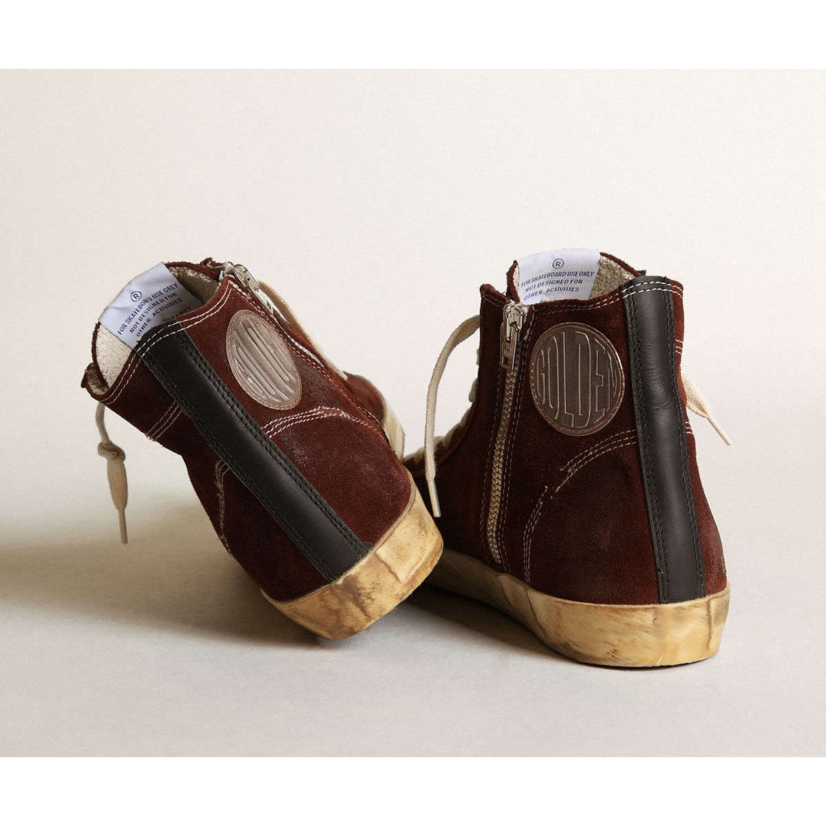 The Settanta, oggi: ispirato al mondo del basket, lo stile delle Scarpe Ginnastica di Francy viene aggiornato con dettagli inaspettati e finiture speciali. Questo modello con tomaia in pelle scamosciata marrone presenta una stella in pelle rosa e una linguetta nera di tacco in pelle nappa. Le cuciture contrastanti color crema sui lacci superiore e color crema aggiungono il tocco finale.