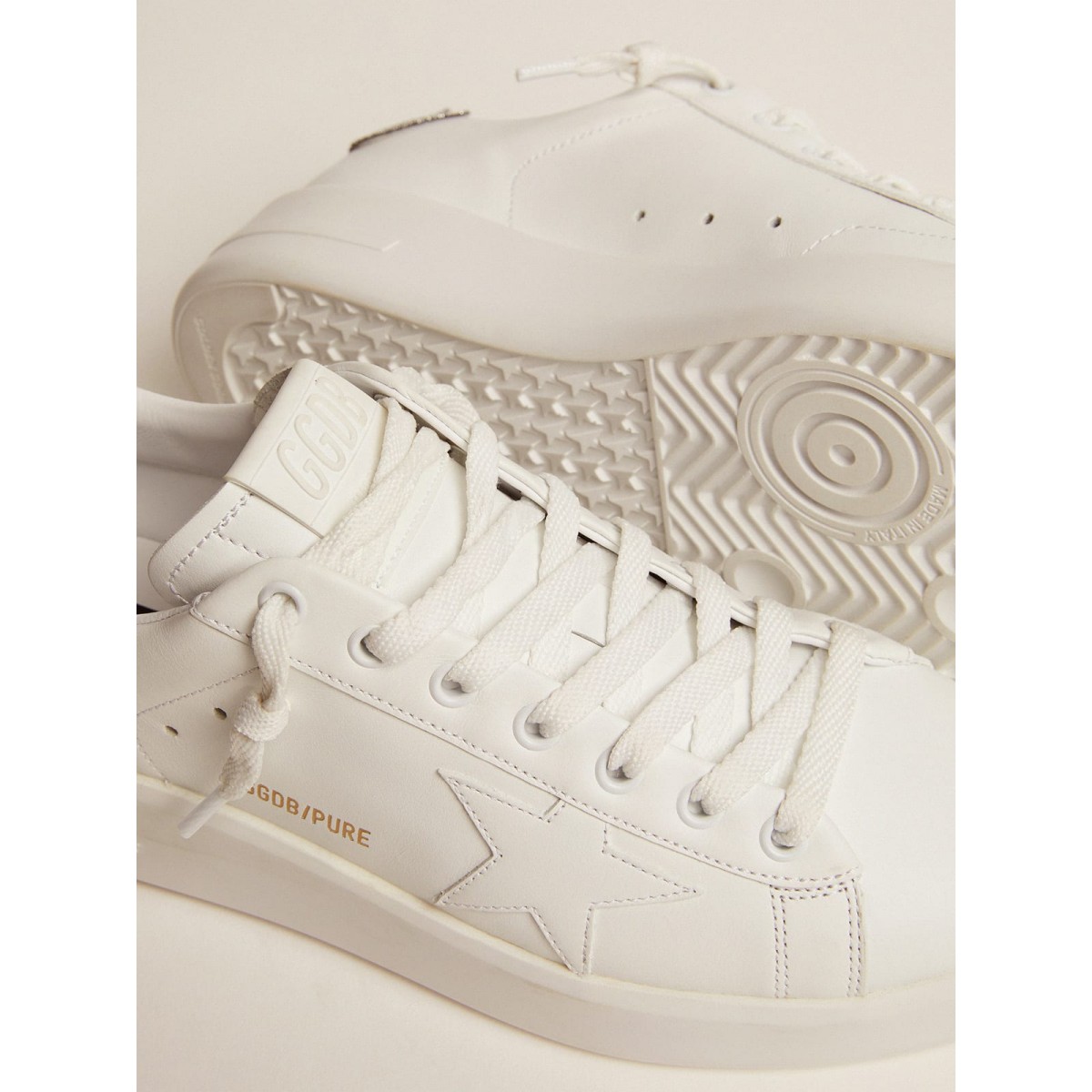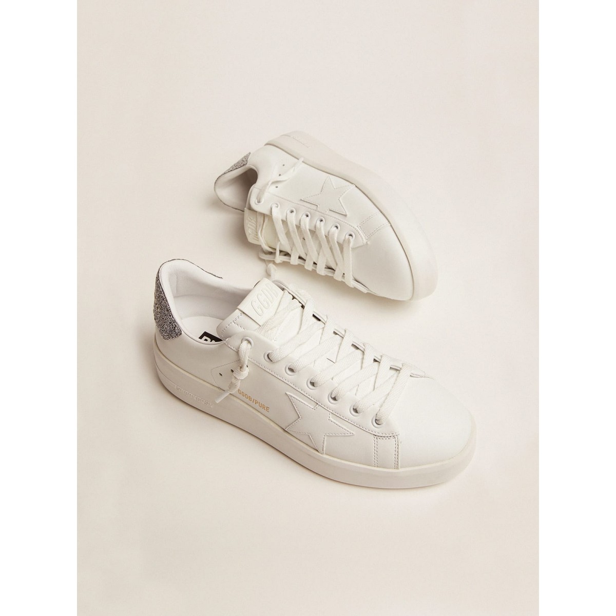 Quando il minimalismo della forma soddisfa la forza dei dettagli: le nostre Scarpe Ginnastica Purestar combinano uno stile discreto con il massimo comfort grazie alla loro tecnologia che assorbiva lo shock. Realizzato in pelle bianca, questo modello presenta una scheda Swarovski Crystal Heel e una stella bianca rialzata.