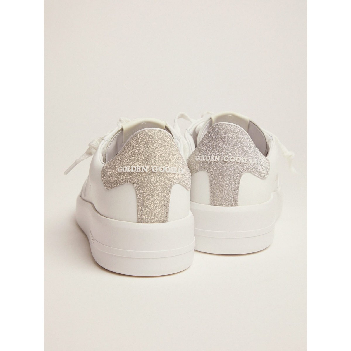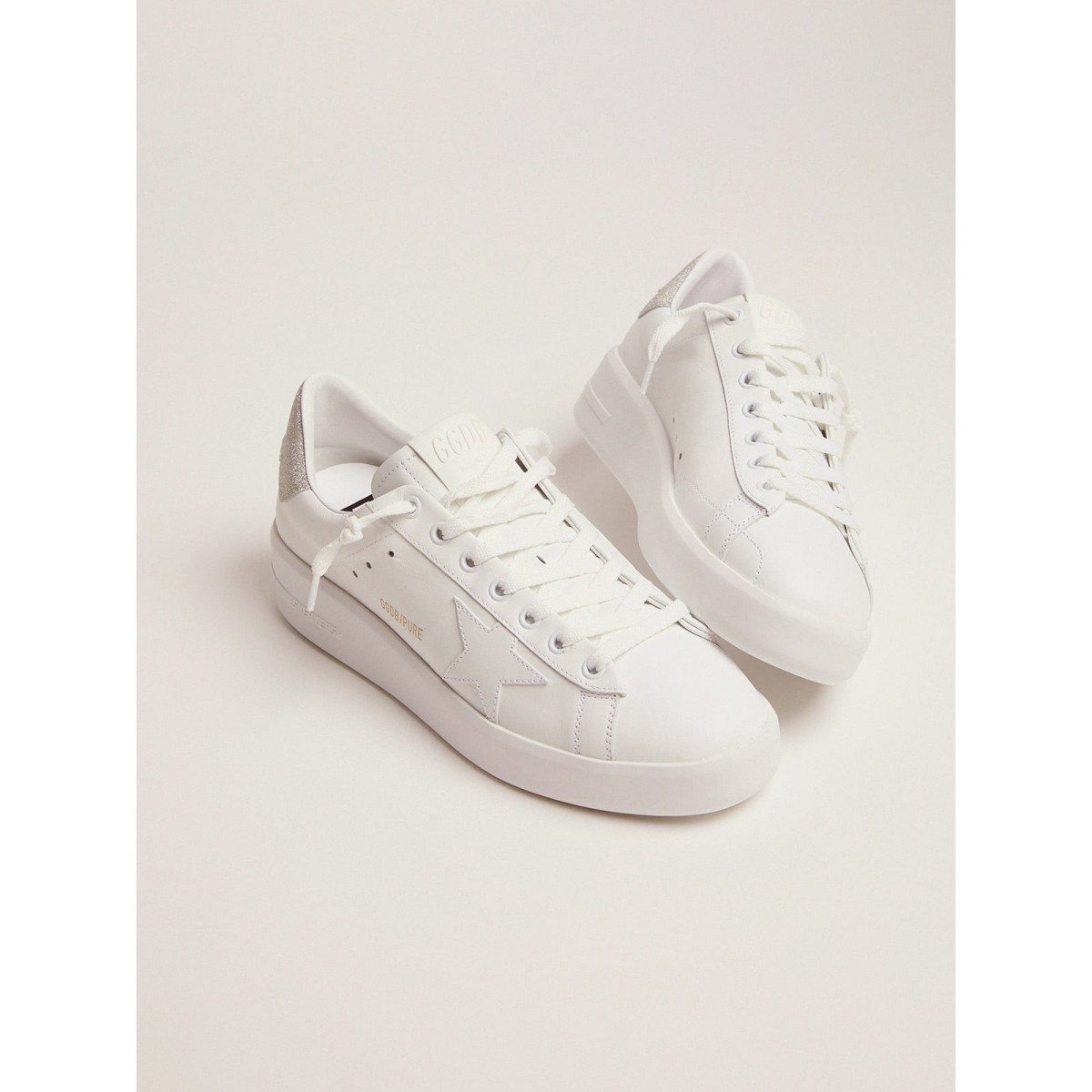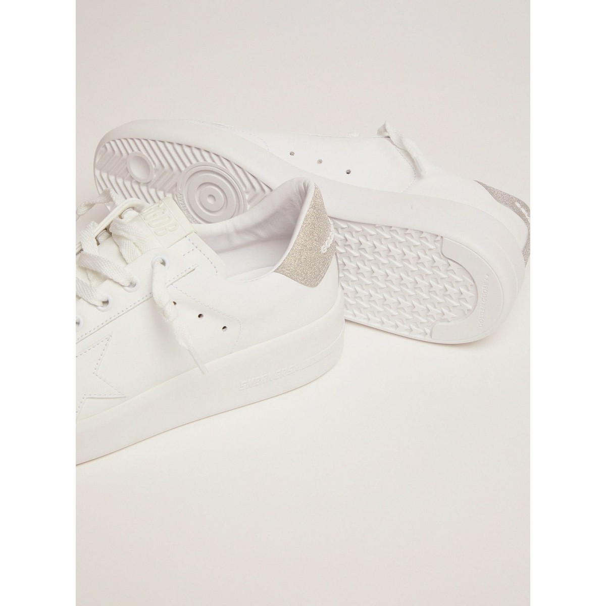 Quando il minimalismo della forma soddisfa la forza dei dettagli: le nostre Scarpe Ginnastica Purestar combinano uno stile discreto con il massimo comfort grazie alla loro tecnologia che assorbiva lo shock. Realizzato in pelle bianca, questo modello dispone di una scheda Glitter di glitter color champagne e una stella bianca rialzata.