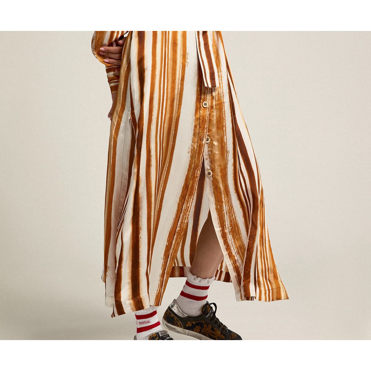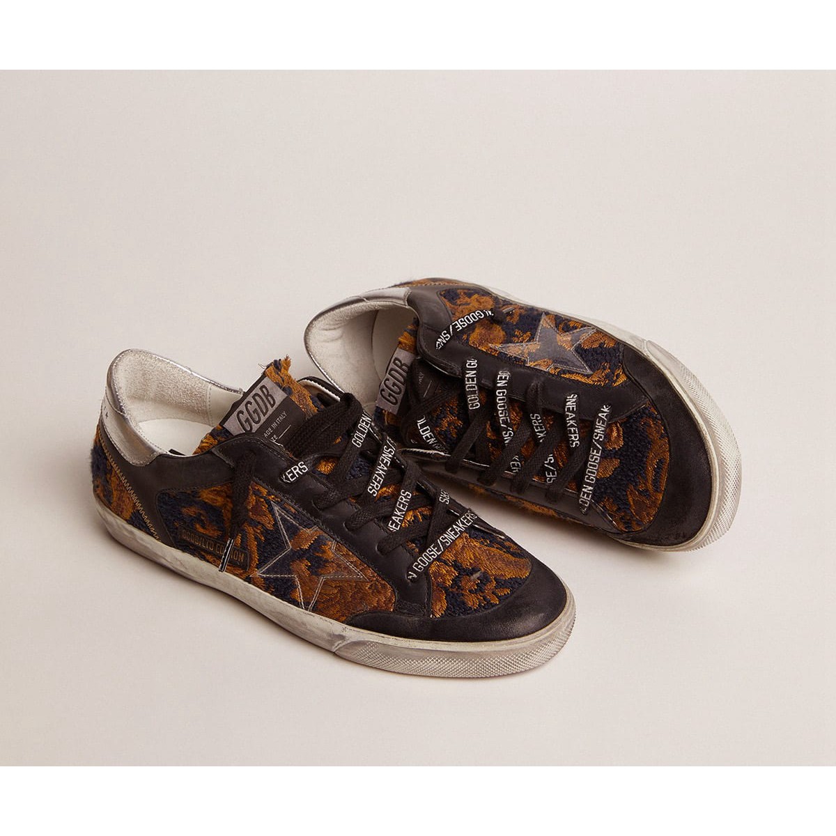 Un’icona senza tempo eppure una che si sta in evoluzione. A Golden, adoriamo prendere i nostri classici e rielaborarli sempre, sempre da una nuova prospettiva. Queste Scarpe Ginnastica da laboratorio super-star in edizione limitata sono un tributo all’eredità artigianale di Venezia: questa versione femminile presenta una toni broccato jacquard in toni blu e oro, illuminata da una stella in PVC e una scheda di tacco in pelle laminato in argento.