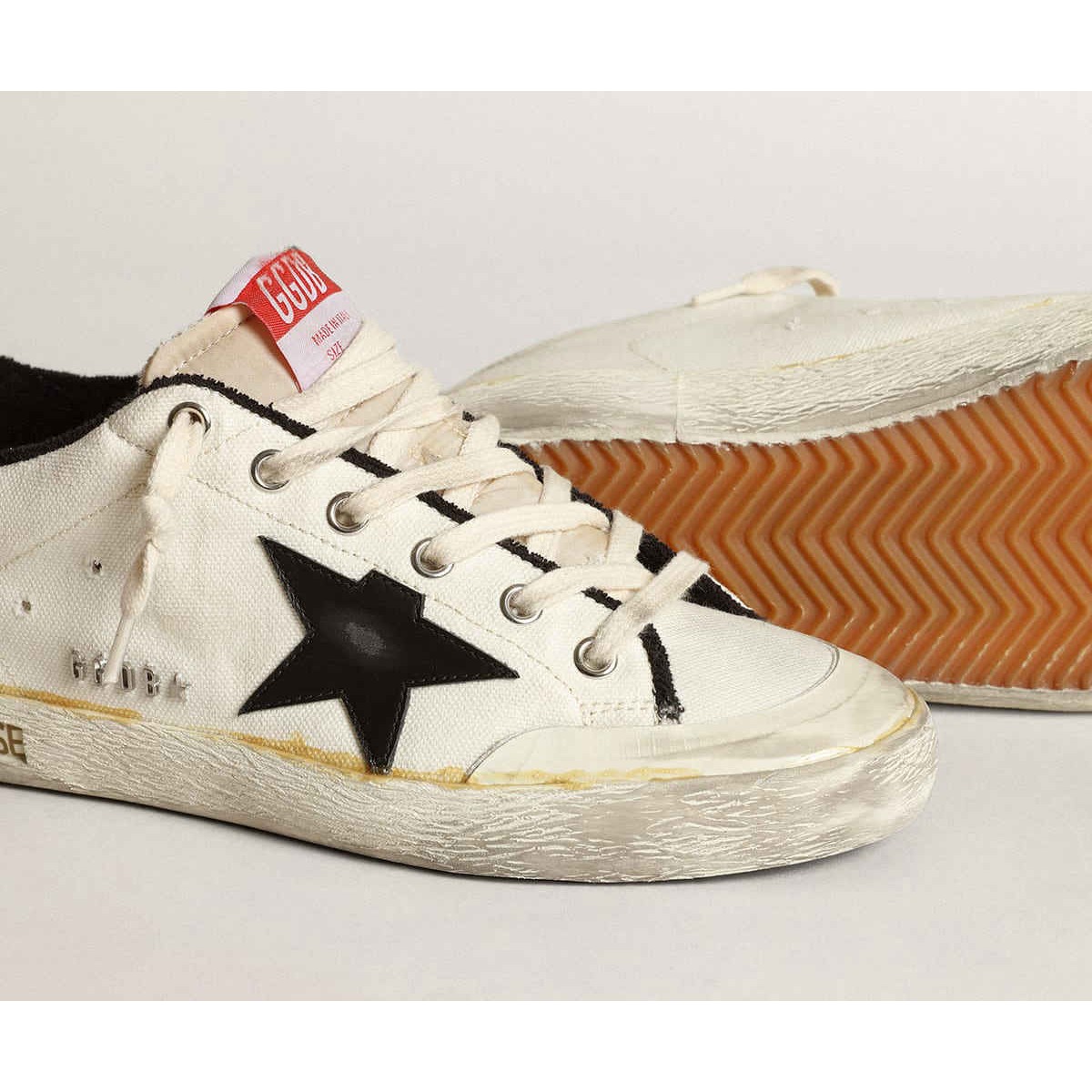 Un’icona senza tempo, ma in costante evoluzione. A Golden, adoriamo prendere i nostri classici e rielaborarli sempre, sempre da una nuova prospettiva. Questo modello da donna in tela beige presenta una stella in pelle nera e una linguetta in pelle bianca. E i dettagli delle lettere GGDB in metallo galvanico e i lacci color crema aggiungono il tocco finale.