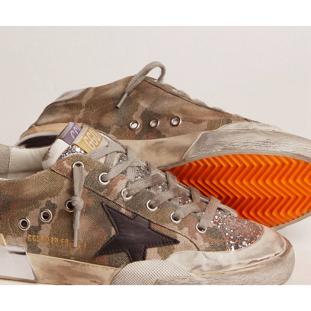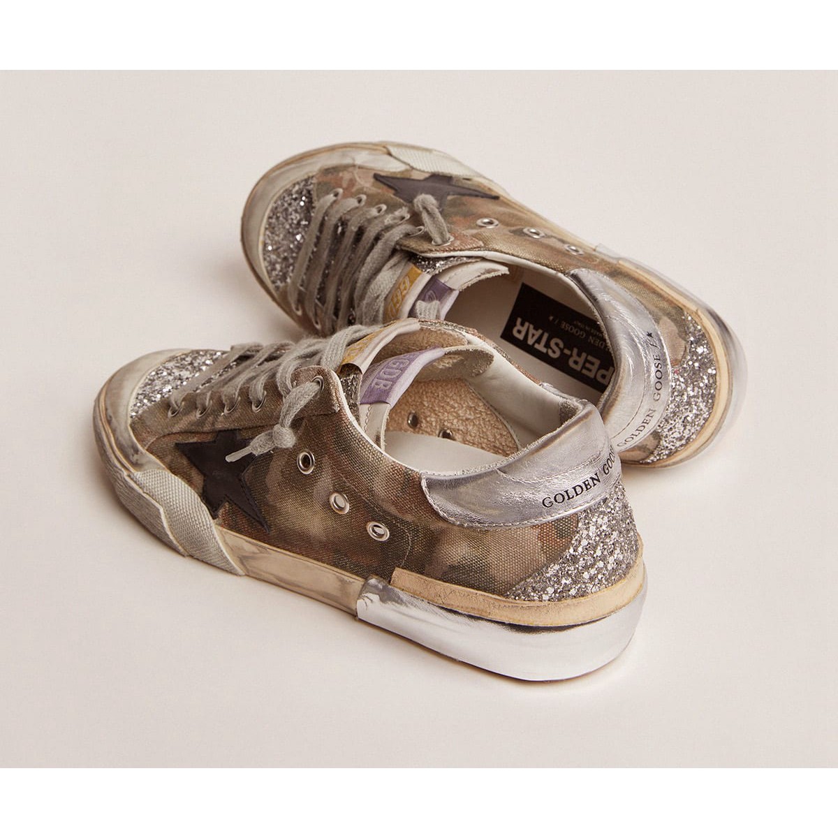 Un’icona senza tempo, ma una che si sta costantemente in evoluzione. A Golden, adoriamo prendere i nostri classici e rielaborarli sempre, sempre da una nuova prospettiva. Queste Scarpe Ginnastica da laboratorio super-star femminile in edizione limitata presentano una tomaia di tela mimetica con inserti glitter d’argento e multi-foxing. Questa complessa artigianato artigianale comporta l’aggiunta di volpe extra, che differisce dalla prima nel suo tono e trama.