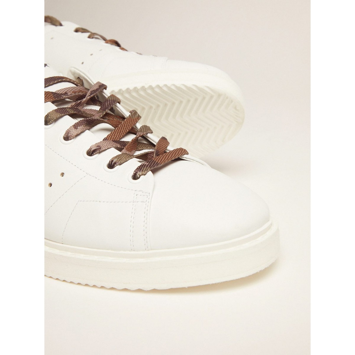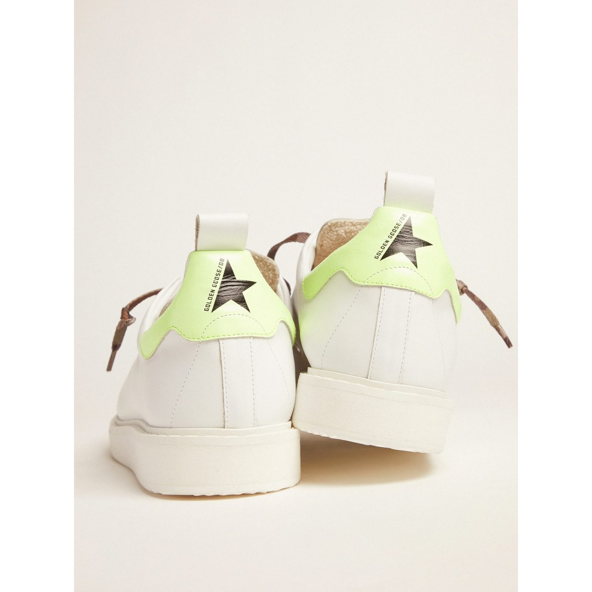 Design essenziali e linee pulite: le nostre Scarpe Ginnastica di avviamento sono la versione più minimalista nel mondo dell’oca d’oro. Questo stile è realizzato in pelle e presenta la speciale costruzione di unica realizzata con le stesse tecniche utilizzate per le calzature casuali e la scheda fluorescente del tallone giallo che aggiunge un tocco di colore.
